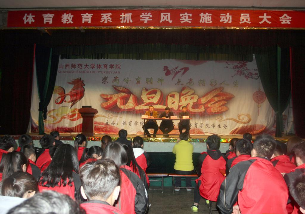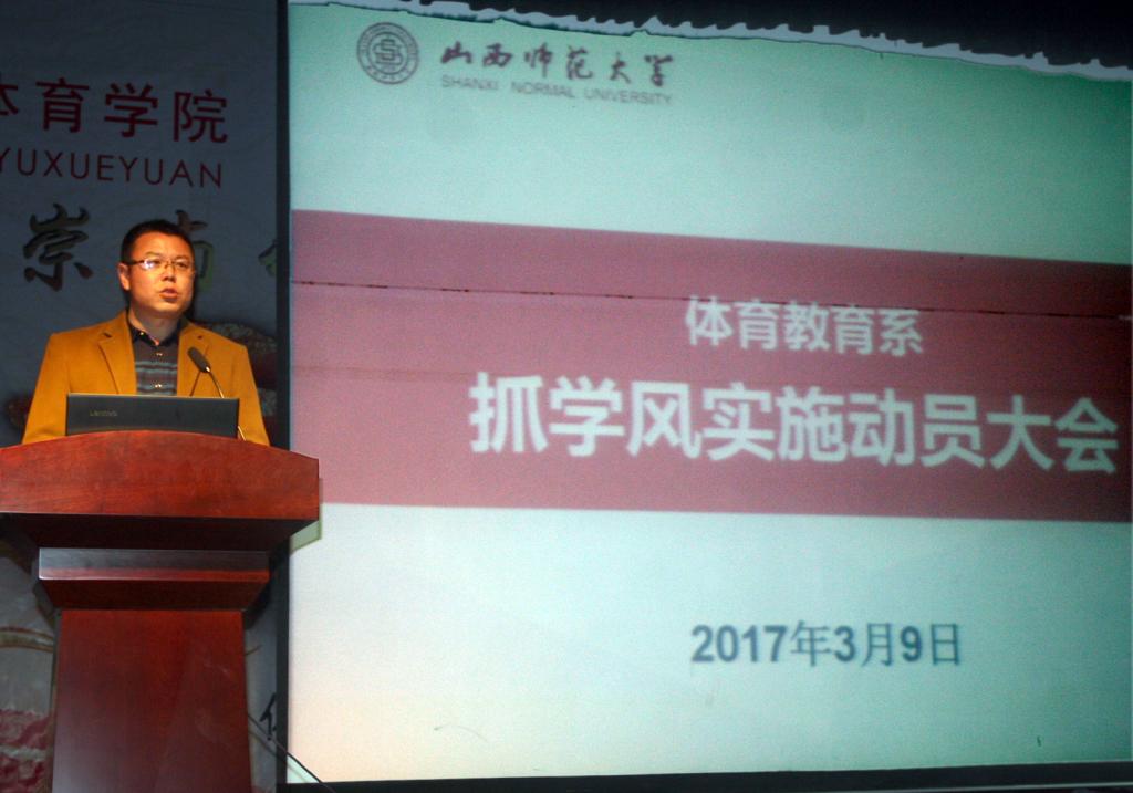 2017年3月9日晚7点半,7790cnm必发集团“体育教育系抓学风实施动员大会”在院礼堂隆重召开。参加本次大会的有:院党委书记李学刚、体育教育系主任杨海龙、副主任张杰以及各班辅导员和全体学生。