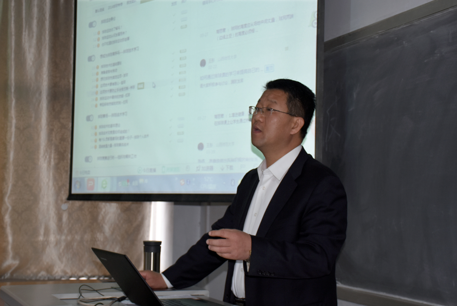 本次培训分为三个部分。王彤副院长首先对“互联网+”背景下在线课程的起源发展与未来趋势,以及在线课程在中国高校的普及进行了阐述,对“怎样建好新形势下的在线课程,建设在线课程所需要的要素?如何落实以学生为中心的教学过程设计与管理及在操作中需要注意的问题?”这三点对老师们做了简单的培训;接着对教育部、山西省、必发集团welcome欢迎光临关于大力发展信息化教学政策对老师们进行了普及,重点强调了在未来申报在线课程“先建设应用,后评选”的要求,使教师真正成为实践的研究者。