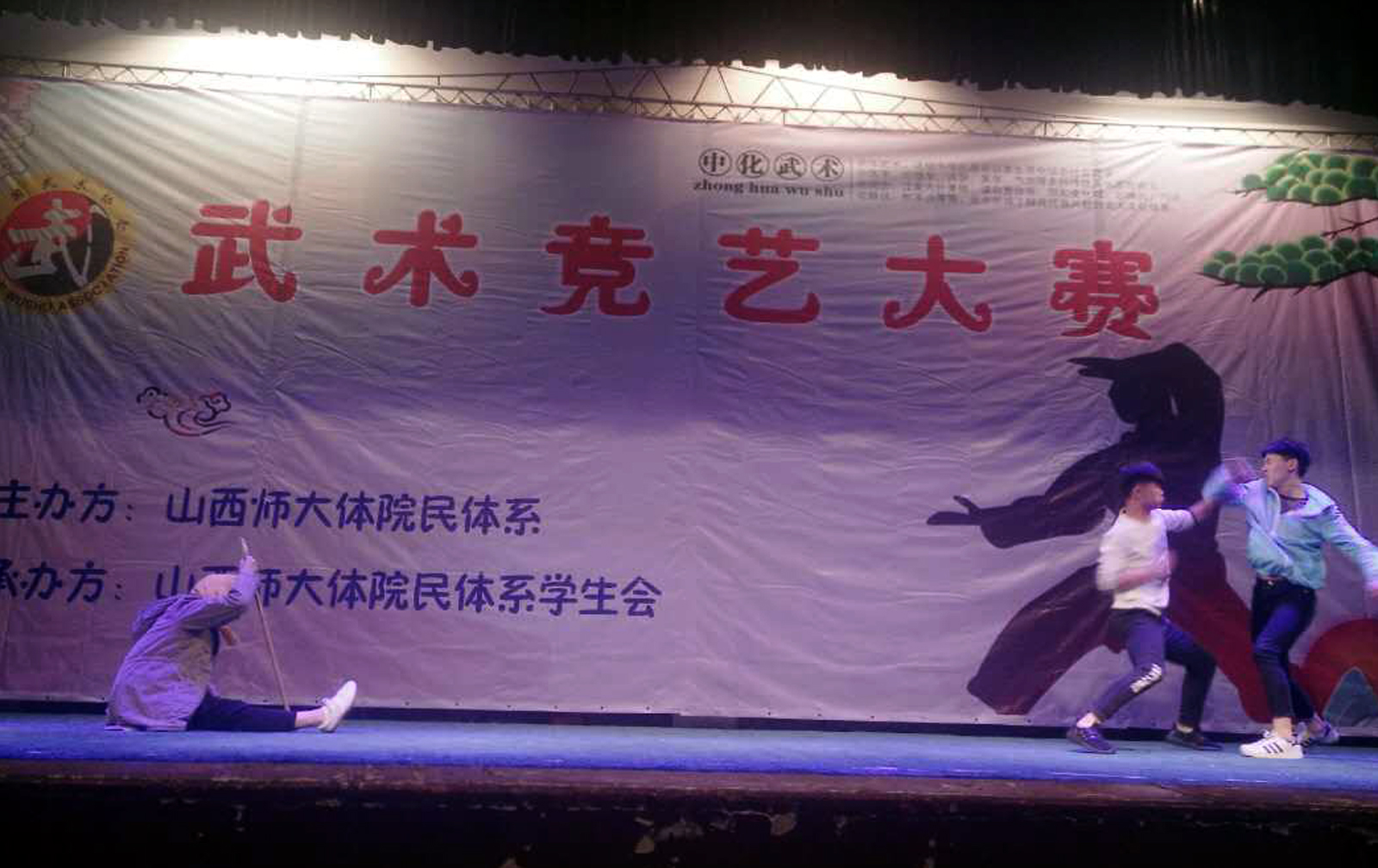 为响应团中央在全国青年学生开展阳光体育运动和临汾市武术进校园的号召,传播武术文化,弘扬民族精神,4月19日晚8点,由7790cnm必发集团民族传统体育系举办的2017年民族传统体育系武术竞艺大赛在院大礼堂成功落下帷幕。院党委书记李学刚、民族传统体育系主任赵道卿与民族传统体育系副主任权黎明三位老师出席了此次比赛,来自全系的六个班级参加了本次比赛。