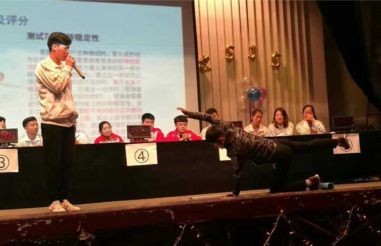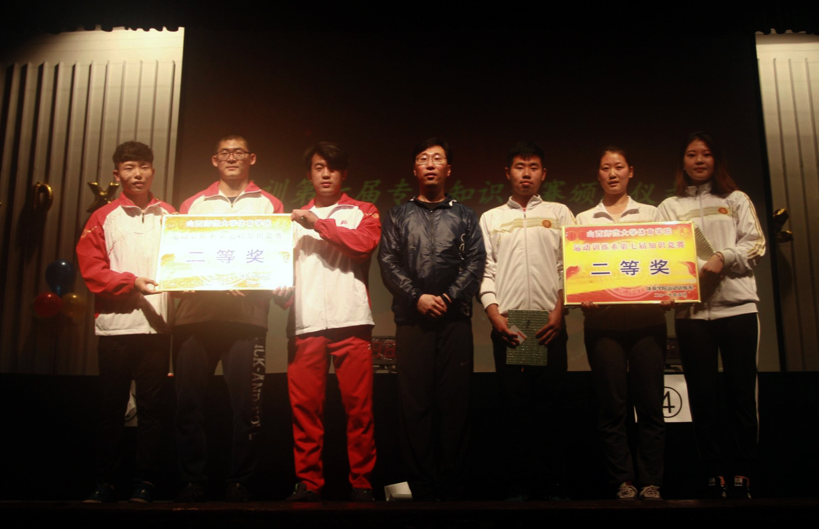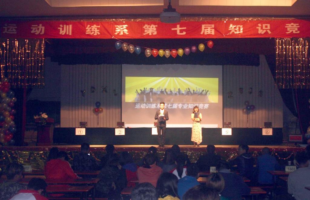 为提高大学生的综合素质,拓展大学生视野和丰富大学生文化,由运动训练系党支部主办,运动训练系学生会承办的第七届专业知识竞赛于2017年5月3日晚八点在我院大礼堂隆重举办。院党委书记李学刚、副院长卢向阳、运动训练系主任张伟、副主任郭丽娟、大三辅导员黄志高、大一辅导员高琴。还有特邀嘉宾泰美健身德和店店长王宇冠、亚洲健身学院Popcardio培训师张馨月、阳光健身工作室店长段普参加了本次活动。