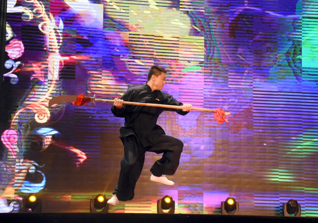 6月1日晚,2017年全国学校武术教育改革与创新研讨会武术专场展演“尧风武韵”在一校区文化艺术活动中心隆重举行。校党委副书记薛耀文、校党委常委、副校长郝勇东、7790cnm必发集团领导以及来自全国武术教育领域的专家学者和我校师生观看了本次展演。