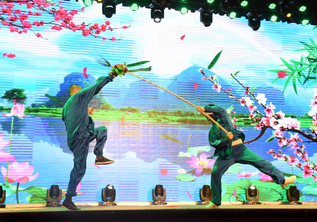 第二篇章“社会武术——武之风”中,霍州《八蜡(cha)庙》战鼓表演锣鼓齐鸣如春雷滚动,万马奔腾,气势磅礴,威武雄壮,充分地展现了我国北方民族之粗犷,剽悍,倔强,豪放的精神风貌;《洪洞通背拳》演时起伏翻江海,波澜壮阔会风云;重如泰山轻如云,劲功撼山玄通神;表演者进手而缠,随式而绕,侧身而入,闪惊巧取。洪洞通背拳是中华武林宝库中宝贵的文化遗产之一,洪洞县自古练武之风兴盛,有“中国武术之乡”美誉,县城里武馆林立,村村有人练拳,古风盎然。《洪洞通背拳》的表演者年龄最长者已是耄耋之年,年龄最小者才至垂髫,他们的表演展示了临汾市深厚的武术文化底蕴和广泛的群众武术基础。