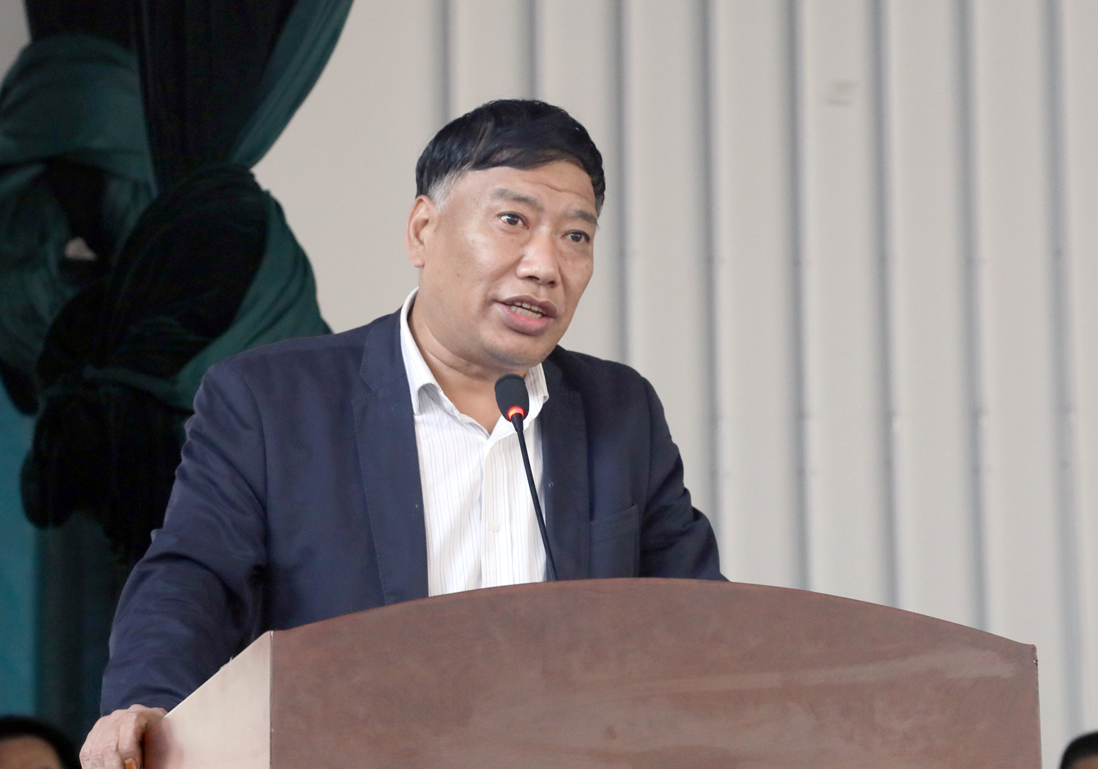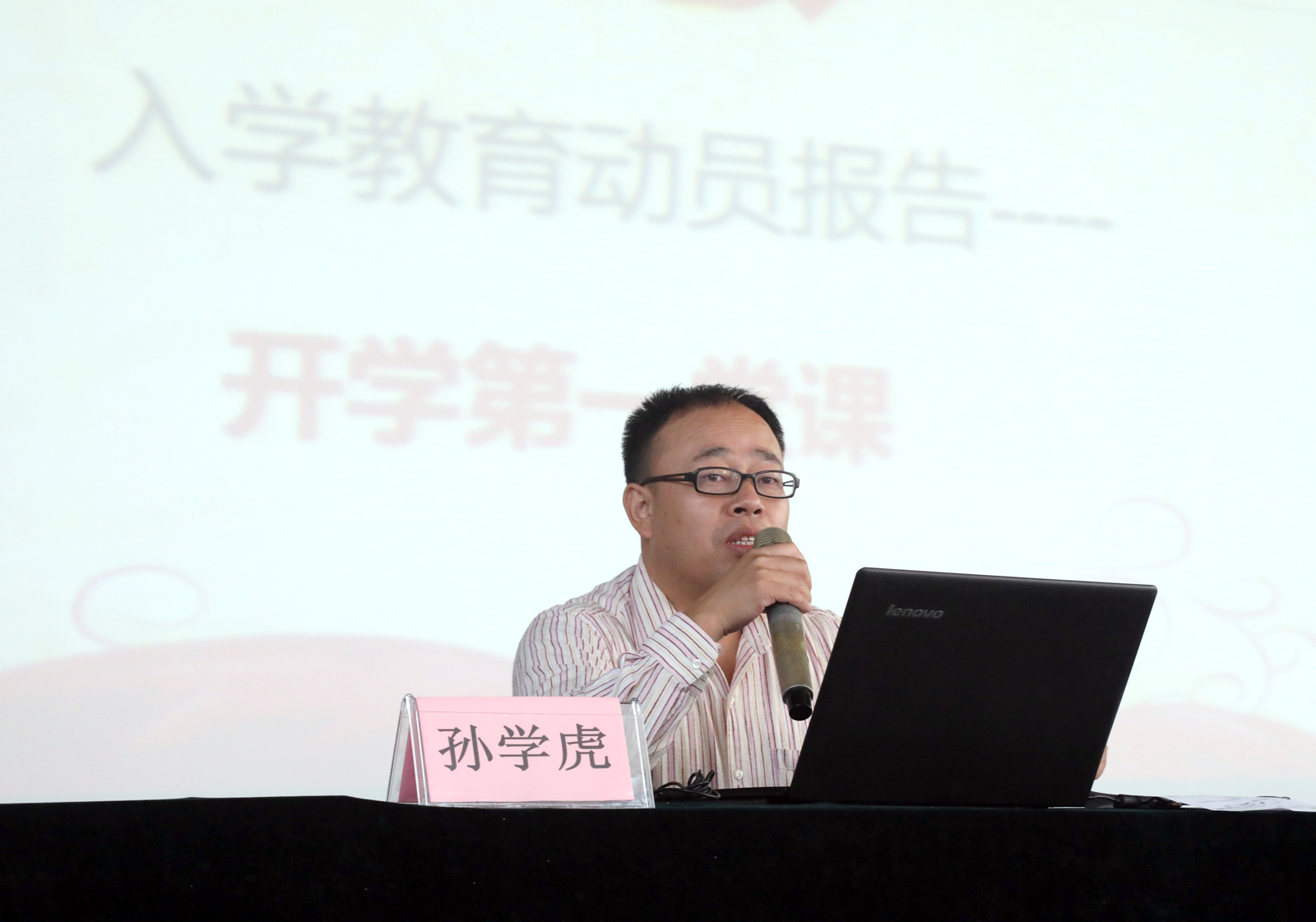 院党委副书记孙学虎主持动员大会并为全体新生做了《开学第一堂课》