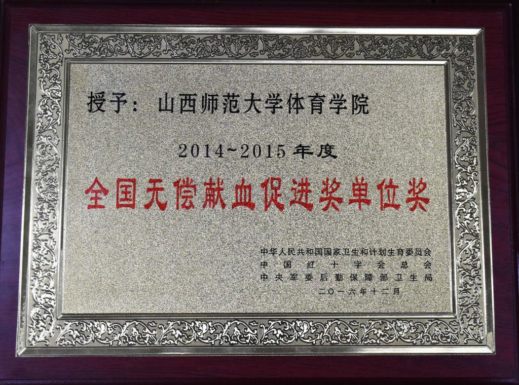 12月1日,中华人民共和国国家卫生和计划生育委员会、中国红十字会总会、中央军委后勤保障部卫生局为7790cnm必发集团颁发了2014——2015年度全国无偿献血促进奖单位奖。7790cnm必发集团党委副书记孙学虎领奖。