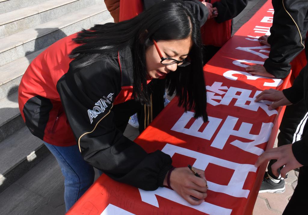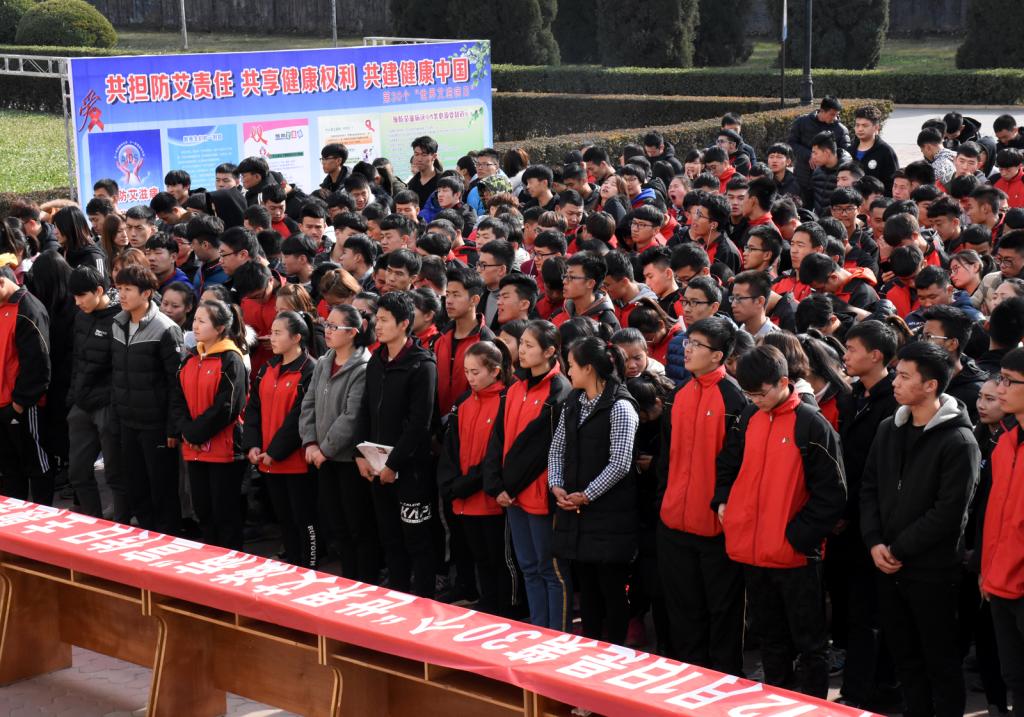 为了提高7790cnm必发集团学生防范艾滋病的意识,中午12点30分,由院团委主办、“蒲公英”志愿者服务队承办的“共担防艾责任,共享健康权利,共建健康中国”主题教育活动在教学楼前举办。院团委副书记程祖浩老师出席并讲话,全院400余名青年志愿者参加了活动。