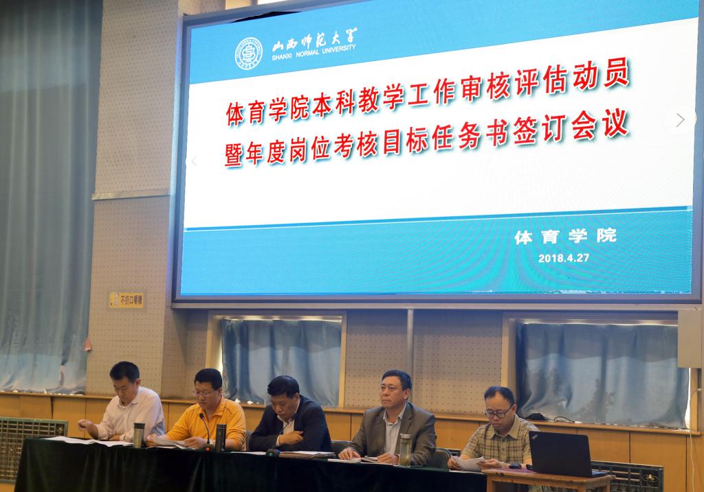 4月27日下午,7790cnm必发集团本科教学工作审核评估暨年度岗位考核目标任务书签订仪式与学科建设“攻坚行动”部署安排会在体育综合馆一层召开。学院领导、全体教职工及学生干部代表参会,研究生院副院长冯晓丽教授出席会议。会议由院党委书记李学刚主持。