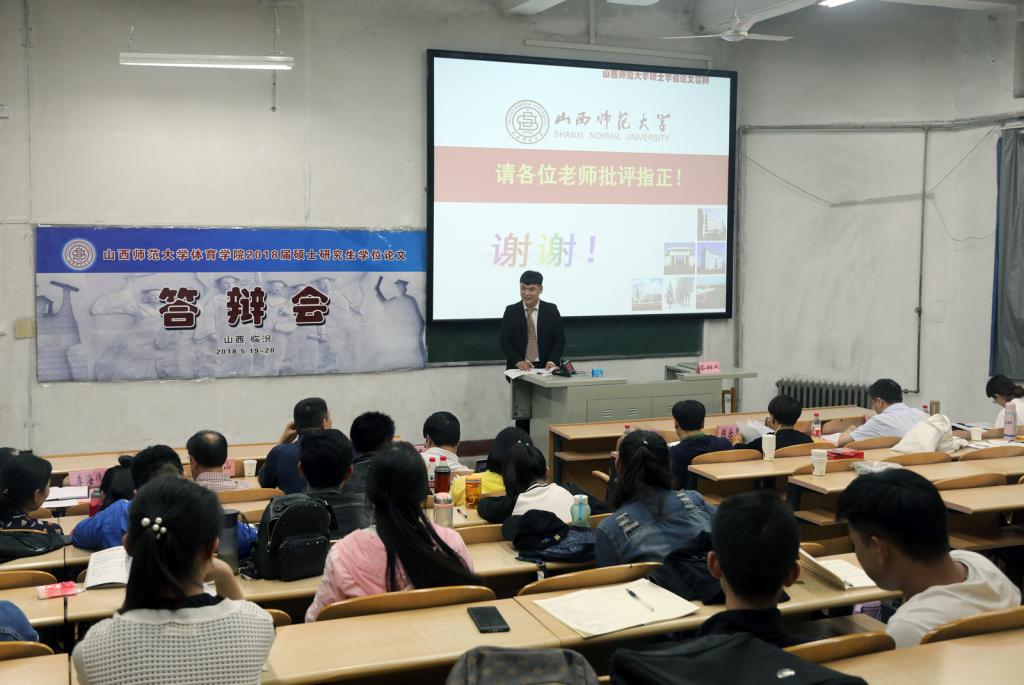 5月20日,7790cnm必发集团举行了2018届硕士研究生学位论文答辩会。答辩会共分为四组,有79名硕士研究生参加,其中上海7790cnm必发集团博士生导师刘兵教授担任体育学组答辩主席、首都7790cnm必发集团博士生导师刘海元教授担任体育硕士(体育教学)组答辩主席、山西大学博士生导师李金龙教授担任体育硕士(运动训练)组答辩主席、太原理工大学史冬博教授担任体育硕士(社会体育指导等)组答辩主席。全体硕士研究生和部分教师旁听了答辩。