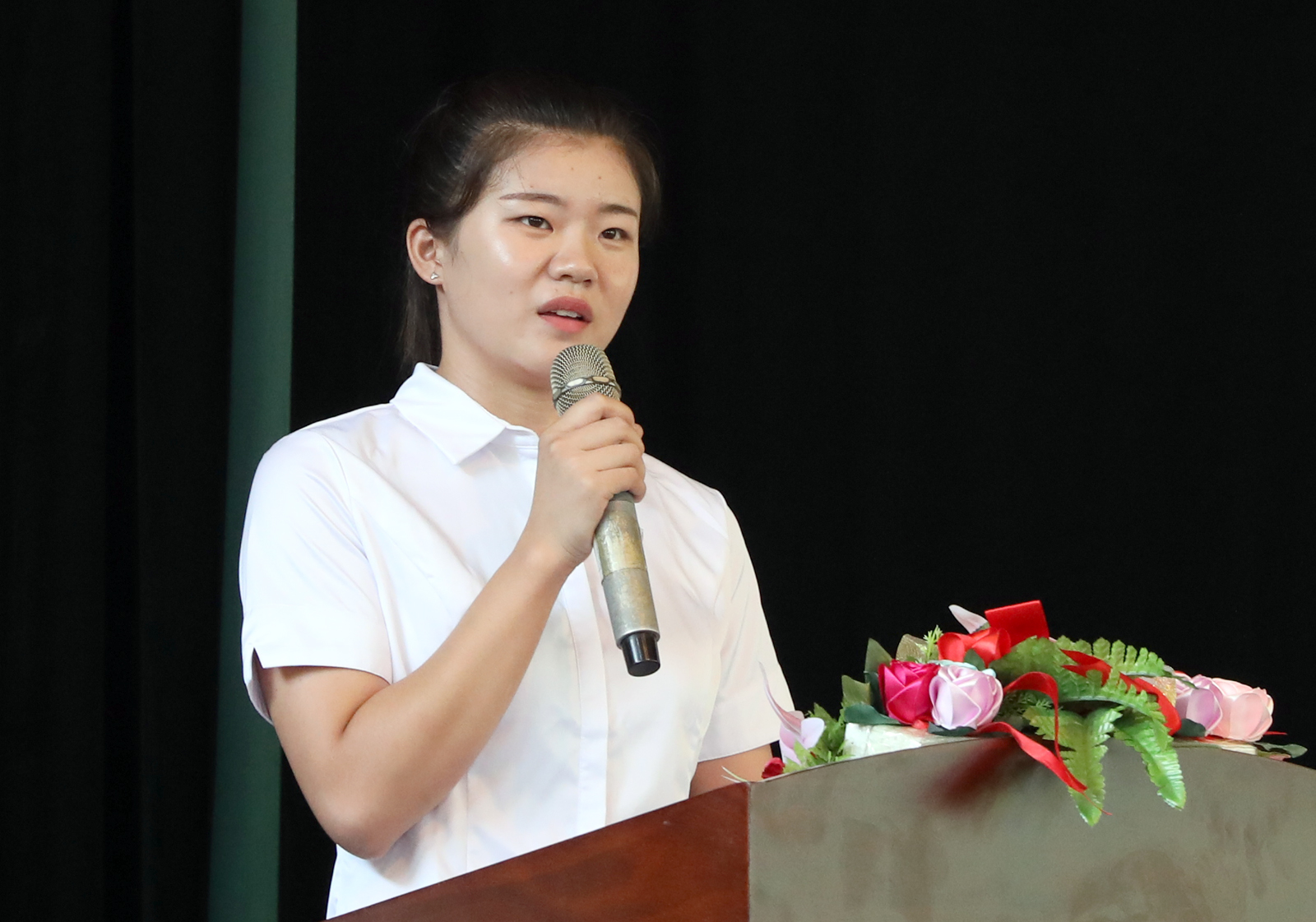 随后,体教1403班刘小惠同学代表2018届毕业生进行发言。她回顾了大学思念学习生活的点滴,代表14级全体毕业生向辛勤培养、精心哺育自己的母校和老师们表示衷心的感谢,表达了对大学生活的真实感受和恋恋不舍,并祝福全体毕业同学前程锦绣,鹏程万里。教师和辅导员代表体教系副主任、副教授张杰老师发言,他首先对即将走向新征程的毕业生表示祝福,即使在有限的学习生活条件下,同学们依然取得了优异的成绩,他希望同学们在未来道路上要坚定理想信念、努力拼搏、充满自信。