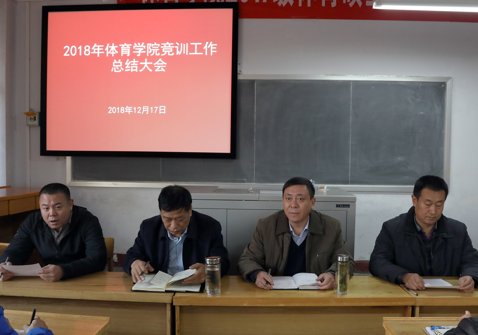 院长郑旗简要回顾了2018年学院重点完成的工作情况,并就学校学院运动训练竞赛工作作了重要讲话。他说,大家要正确认识与分析学院竞训工作面临的新形势与新挑战,明确我校竞训工作的重要意义与战略部署,科学研判2019年各代表队运动训练任务与参赛目标,要合理调整教练员,优化参赛项目,以篮球项目为突破口打造高水平运动队;教练员要提高科学训练水平,抓好队风训风建设,扩大选材面,细化训练方案,确保训练效果与竞赛成绩。并希望大家提高政治意识与大局意识,发挥优良的卓越执行力,维护好学院良好的政治生态、学术生态与训练生态,团结一心,尽职尽责,力争2019年学校竞训工作再上新台阶。