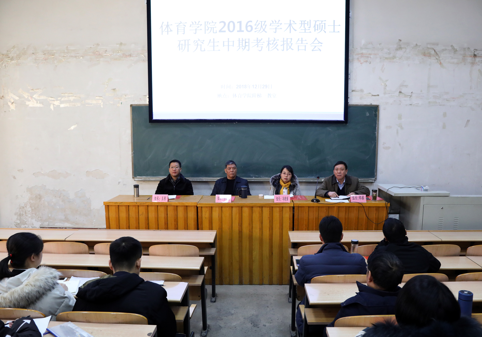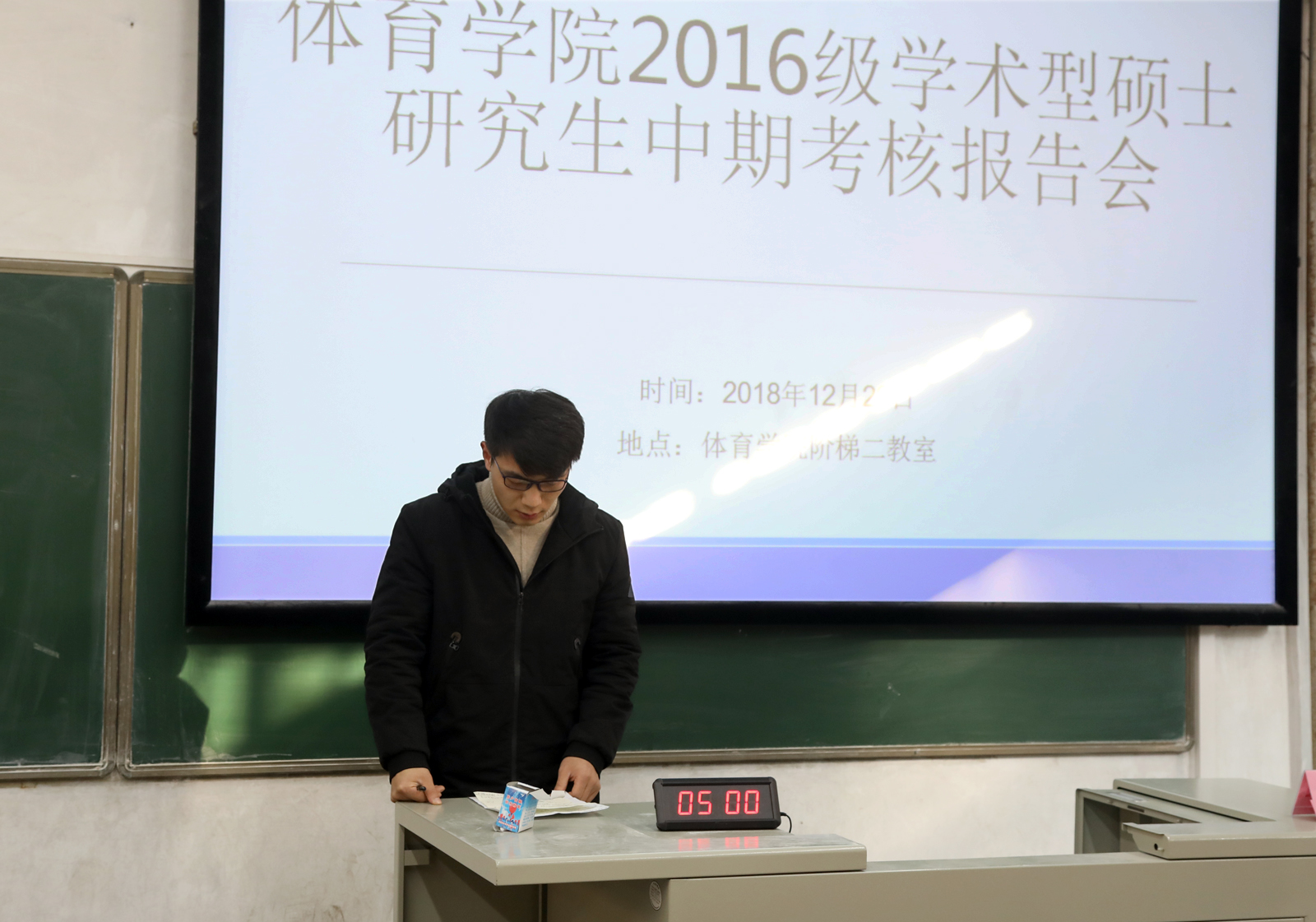 2018年12月29日下午2:30在7790cnm必发集团阶一、阶二、阶三、第6教室同时举行了2016级学术型、2017级体育硕士研究生中期考核报告会。