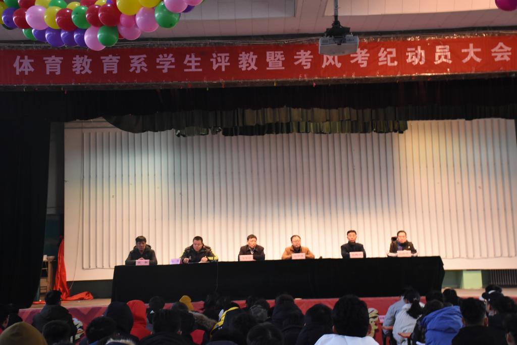 1月3日上午9点,“诚信做人,诚信考试”体育教育系考风考纪教育大会在大礼堂如期召开。系主任杨海龙,系副主任张杰和各班辅导员参加了会议。