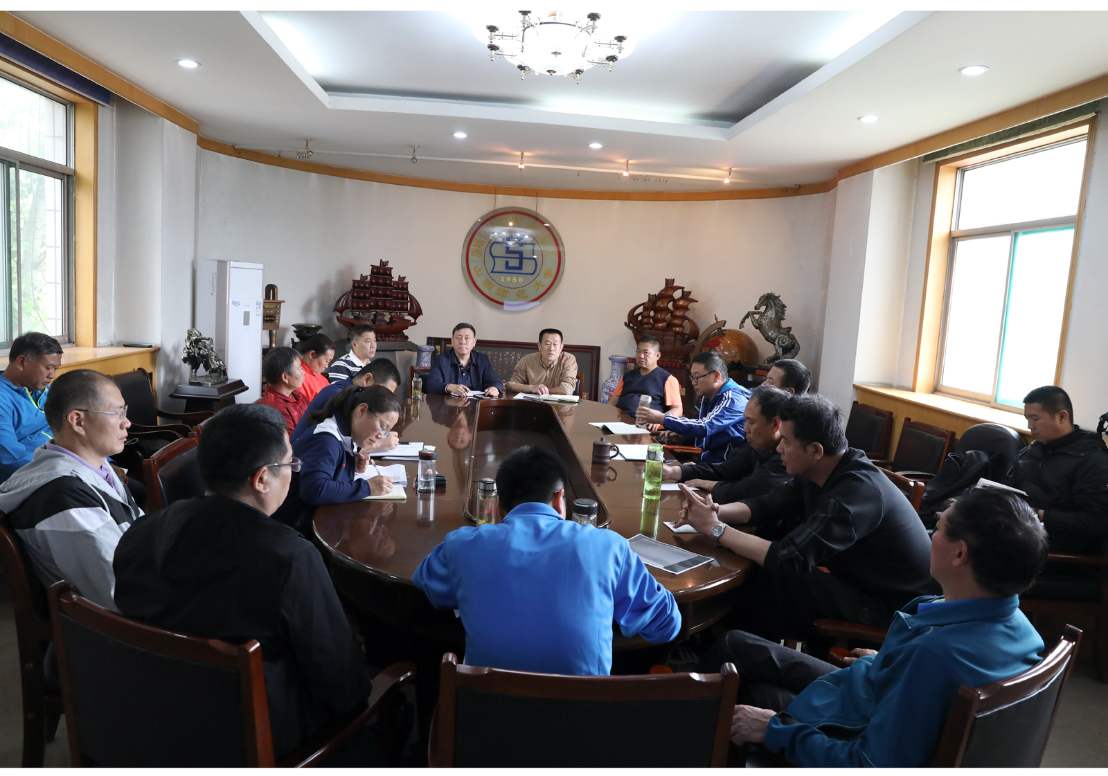 为进一步加强各项目运动队建设,将运动训练与竞赛工作向纵深推进,5月6日下午,学院2018-2019学年第二学期运动训练与竞赛工作会议在东会议室召开。院长郑旗、副院长卢向阳、足球队等11支代表队全体教练员参会。会议由副院长卢向阳主持。