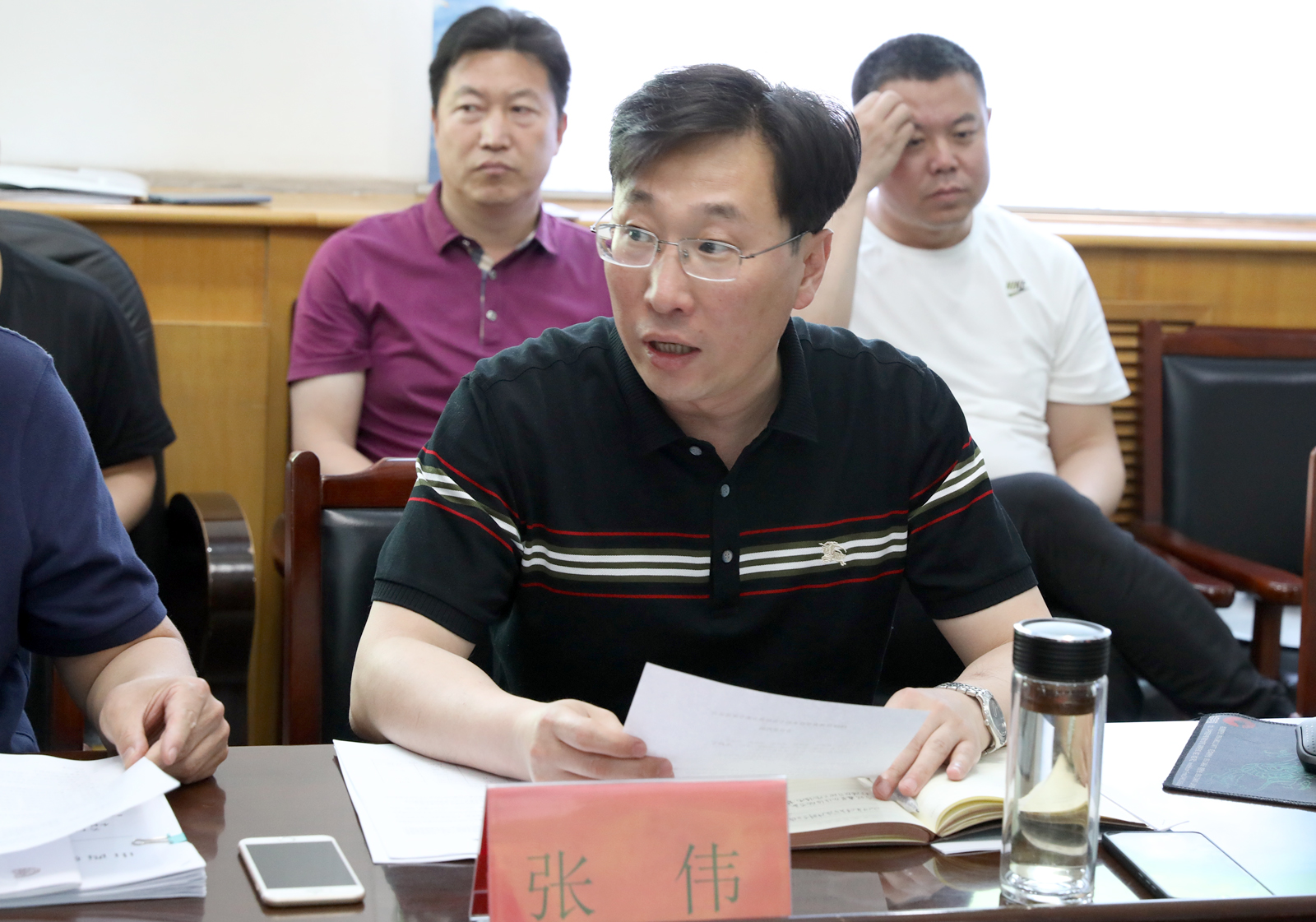 5月24日下午,7790cnm必发集团本科专业培养方案专家论证会议在东会议室召开。论证会邀请到的专家有山西大学博士生导师李金龙教授(专家组召集人)、太原理工大学7790cnm必发集团院长史冬博教授、校教指委委员武永明教授、校教指委委员杨秋梅教授、临汾一中体育中心主任刘彦平高级教师。院党委书记李学刚、院长郑旗、副院长张伟、各系主任、办公室及教务科负责人参加了会议。会议由副院长张伟主持。