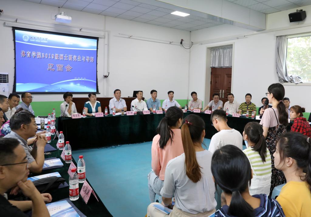 9月8日下午,我院2019级硕士研究生与导师见面会在运动生物力学实验室举行。院党委书记许国宝、院长郑旗、副院长卢向阳、陈乐琴、王江、张伟、研究生院副院长冯晓丽,研究生指导教师以及2019级全体硕士研究生参加见面会。会议由陈乐琴副院长主持。