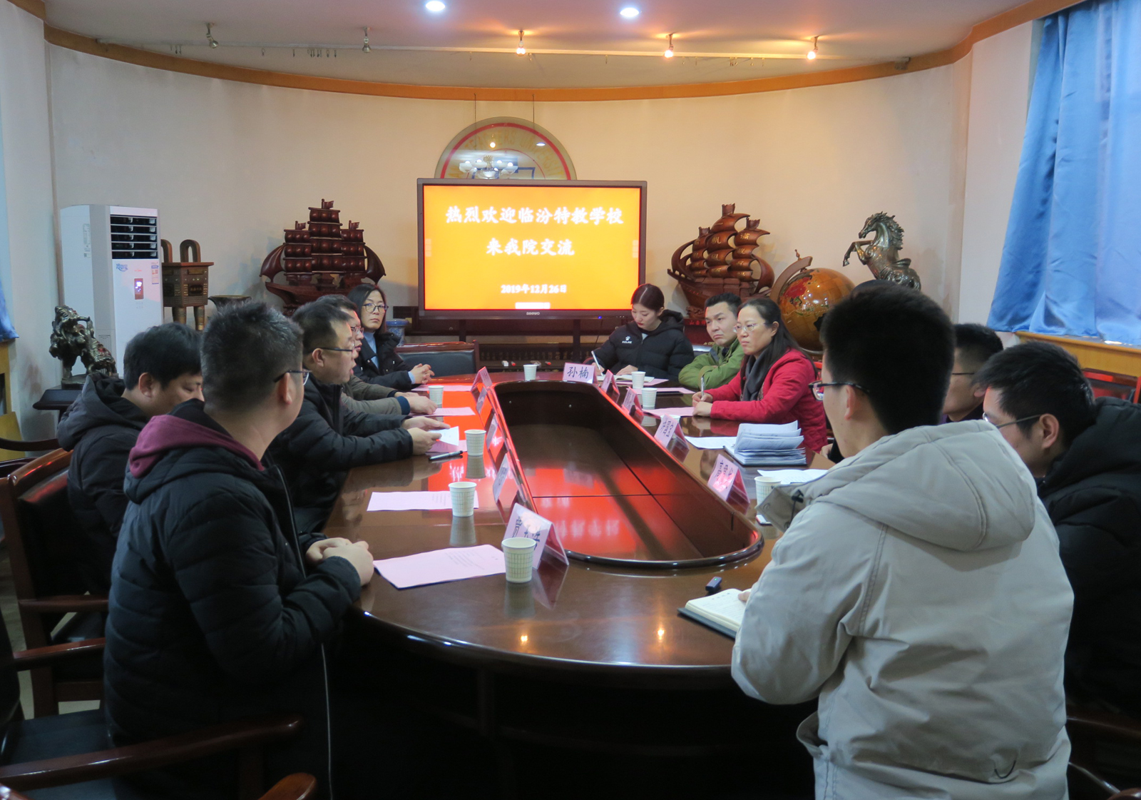 12月26日下午,临汾特教学校校长吴笃贤一行五人来我院交流工作,我院党委书记许国宝、运动训练系主任郭丽娟、办公室主任高贯发、团委副书记程祖浩、运动训练系副主任杜治华以及学生代表参加了交流座谈。