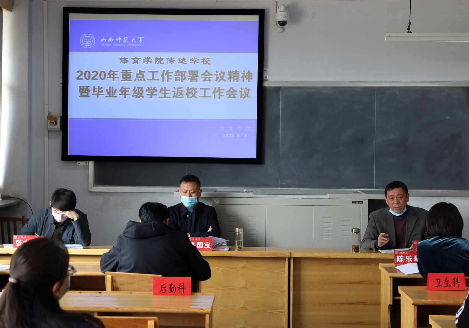 4月15日上午,我院在教学楼6教室传达2020年学校重点工作部署会议精神,安排毕业年级返校和本学期工作。各系部、科室负责人及三校区相关单位负责人参加会议,会议由院党委书记许国宝主持。
