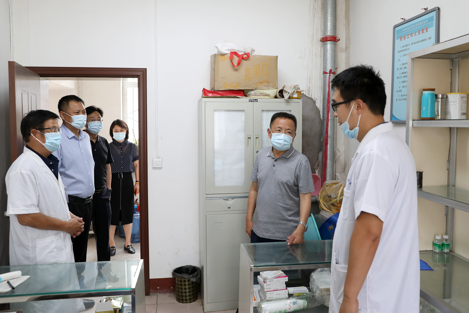 6月8日上午,副校长王云一行来我院调研,院领导及相关科室负责人参加调研。副校长王云一行先后对学院栅栏墙、医疗室、食堂等地方进行了调研,对调研过程中所发现的问题及时提出相应整改措施与解决意见。他强调,随着疫情防控进入常态化,必须时刻紧绷食品安全这根弦,任何时候都不能松懈;要强化服务意识,做好沟通对接工作,增强安全排查及设施完善工作的时效性,为师生积极营造安全稳定和谐的工作学习环境。(院办/文 邓碾管/摄影)