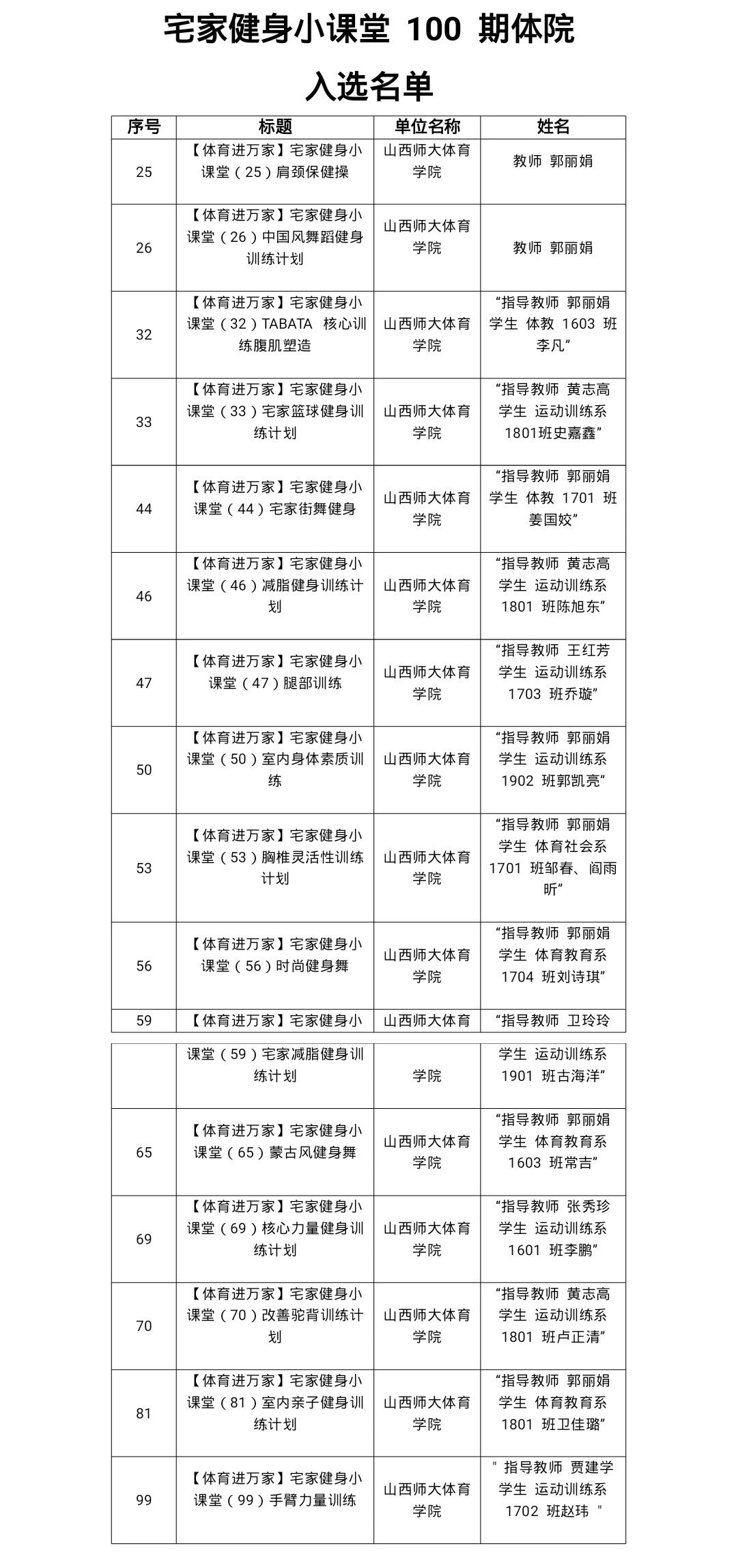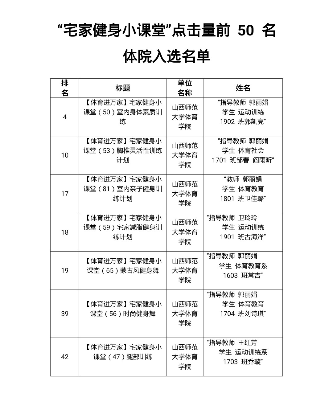 附:“宅家健身小课堂”、“居家健身晋情开练”活动我院获奖名单: