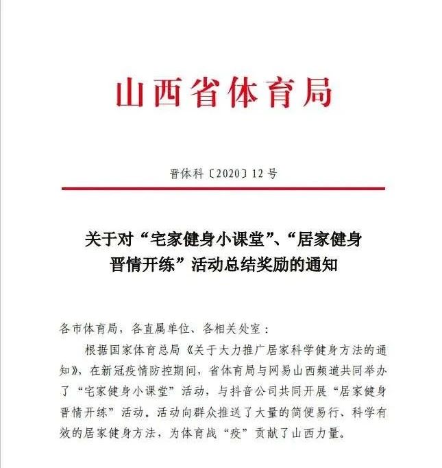 近日,山西省体育局下发了《关于对“宅家健身小课堂”、“居家健身晋情开练”活动总结奖励的通知》(晋体科[2020]12号),我院在“宅家健身小课堂”活动中表现突出,其中100 课中有我院郭丽娟、贾建学、张秀珍、黄志高、王红芳、卫玲玲等教师参与或指导的16课入选,并有8课进入点赞前50名名单,学院荣获“优秀组织奖”。运动训练系主任郭丽娟副教授录制的肩颈保健操视频获得一致好评,并被学习强国平台转载。疫情期间,学校新媒体推送了我院师生创编的“居家健身”部分内容和方法,进一步扩大了宣传。