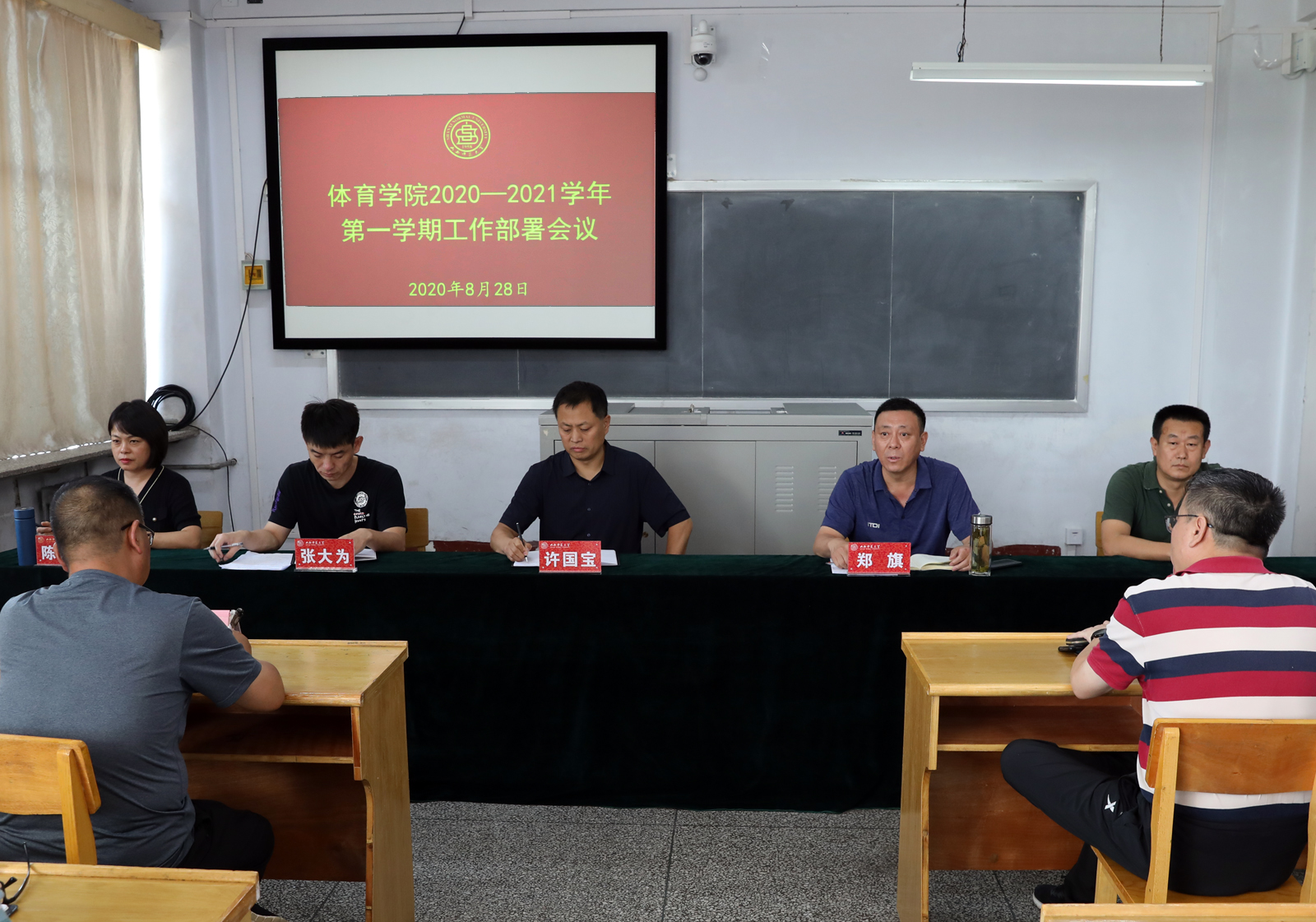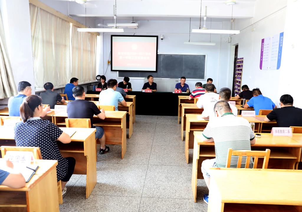 8月28日下午,学院在6教室召开新学期系部科室工作会议,院领导、各系部、工会、团委及三校区后勤、保卫、卫生科室等负责人参加会议。院长郑旗主持会议。