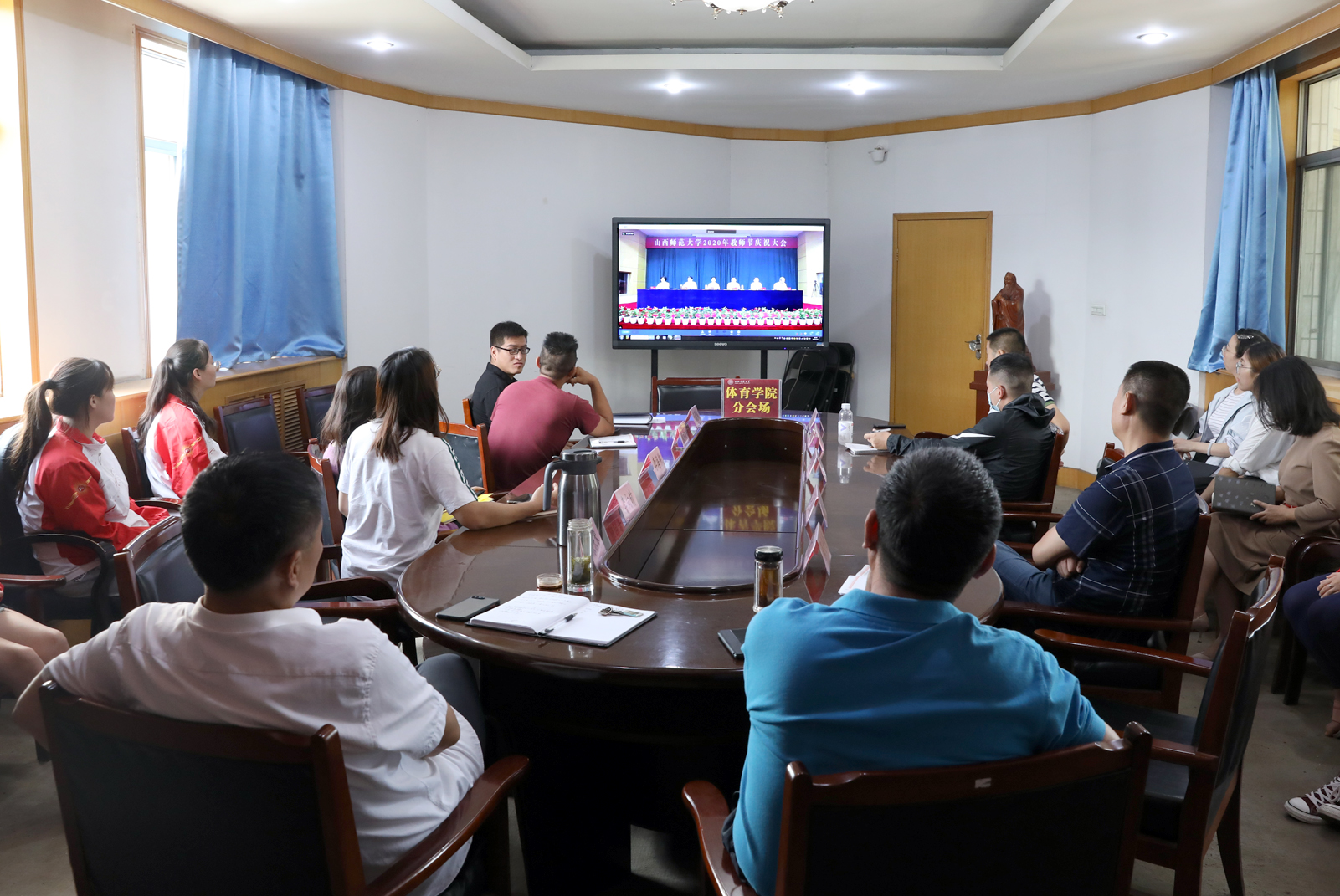 上午10时30分,与会领导、教师、各系学生及研究生代表以视频会议的形式收看了学校举行的2020年教师节庆祝大会。会后大家纷纷表示,将以先进模范为榜样,认真学习大会精神,修身养德,勤学苦练,仁而爱人,追求卓越,积极为建设特色鲜明的高水平师范大学贡献力量!(文/院办李继康 摄影/邓碾管)