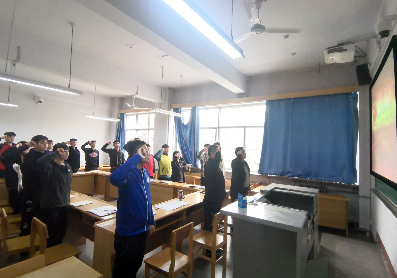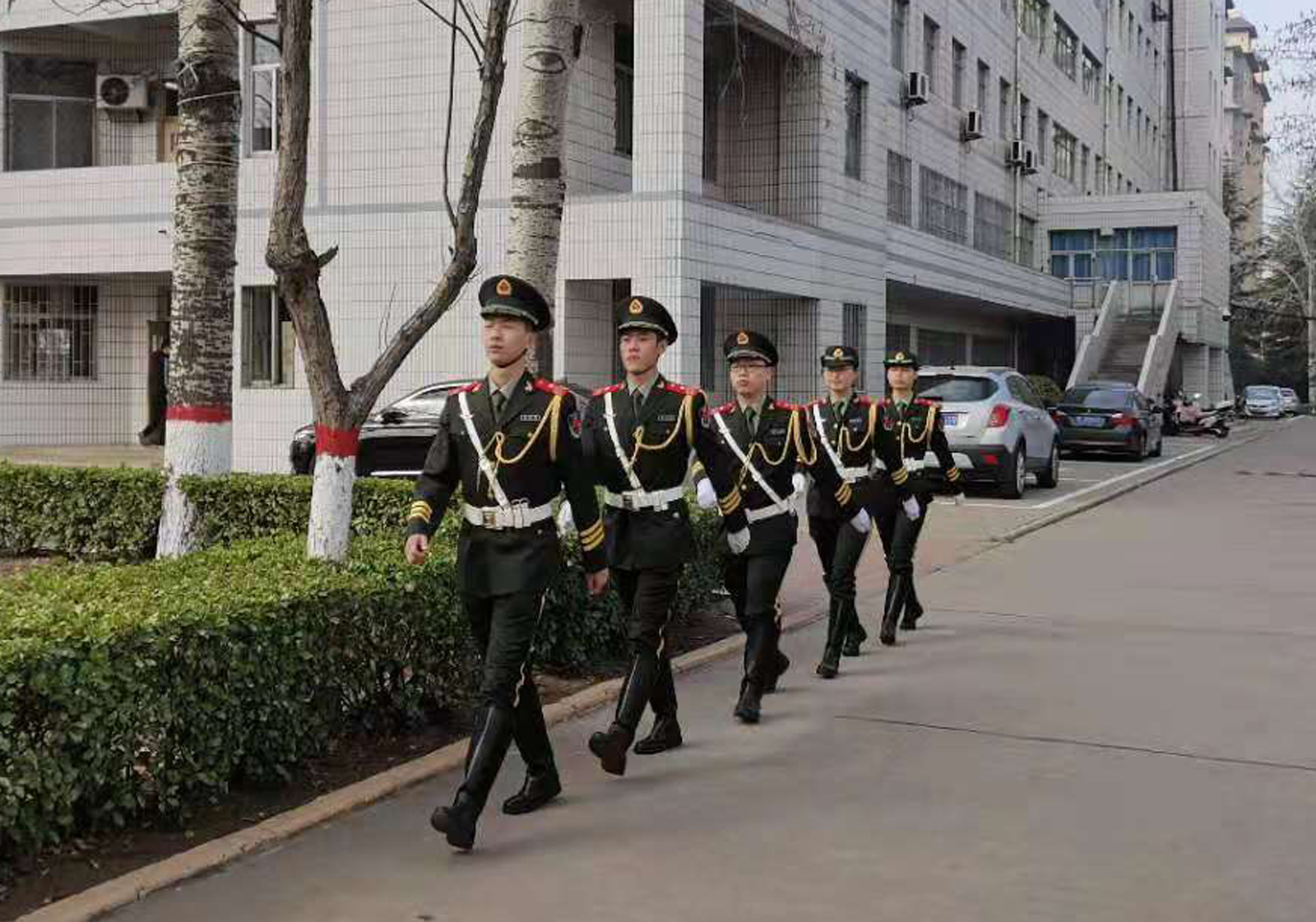为了响应习近平总书记加强党史学习教育,坚定理想信念,进一步贯彻落实疫情防控各项工作任务,在院团委指导下,国旗护卫队队员返校后认真学习党史,将所学知识见诸行动,每天按照分配的任务准时准点到位,统一穿礼服,队伍整齐划一,通过每天上下午对三校区进行全方位、全覆盖式巡逻,确保我院的校园安全稳定。巡查不仅仅是为了完成一项任务,更是为了保证良好的学风院风,给同学们一个舒适安全的学习生活环境,营造一个安全、健康、和谐的校园环境。
