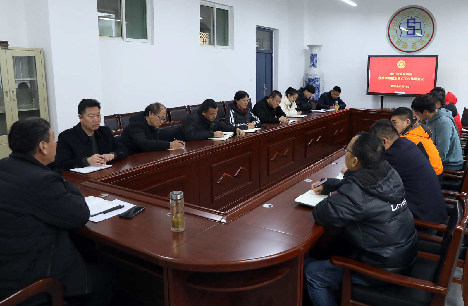 会上,郑旗传达了学校召开的2021年年终重点工作推进会精神,学习了校党委书记张晓永在年终重点推进会上的重要讲话内容,并结合学院实际,部署安排了学院安全大排查、舆情防控、学科建设、教风学风建设、考试期间安全教育管理、年度考核、寒假代表队集训等工作。