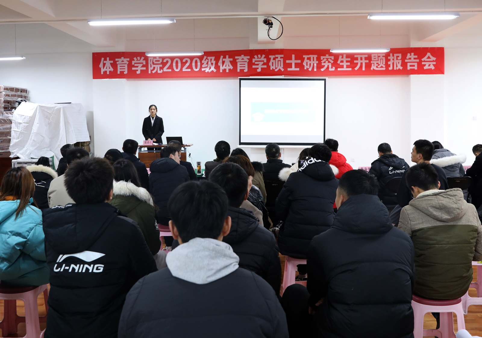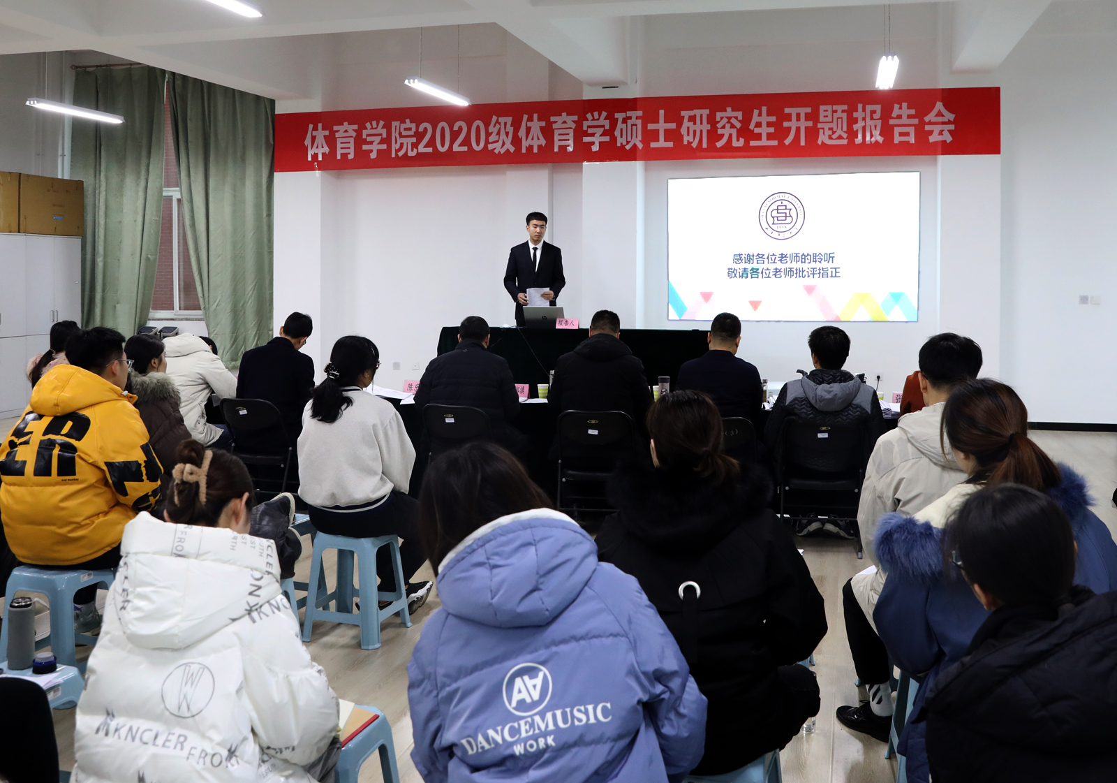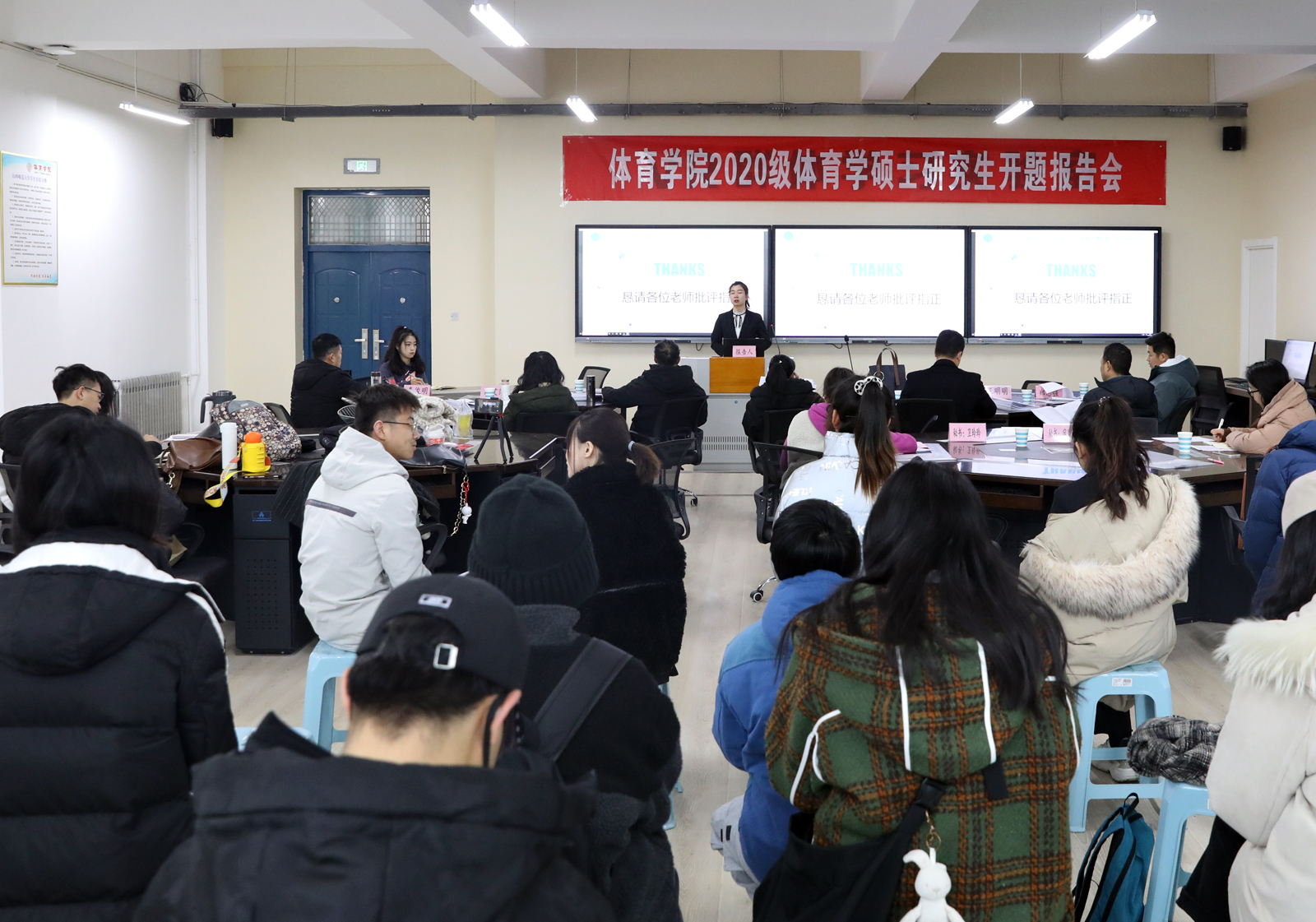 12月24日上午,我院2020级体育学硕士研究生开题报告会在学院实验中心进行,2020级36名研究生以PPT和口头报告的形式,对自己的学位论文选题进行了陈述,各组专家评委从论文选题的可行性、研究设计的可靠性和报告文本的规范性等方面进行论证,提出了相应的意见和建议。
