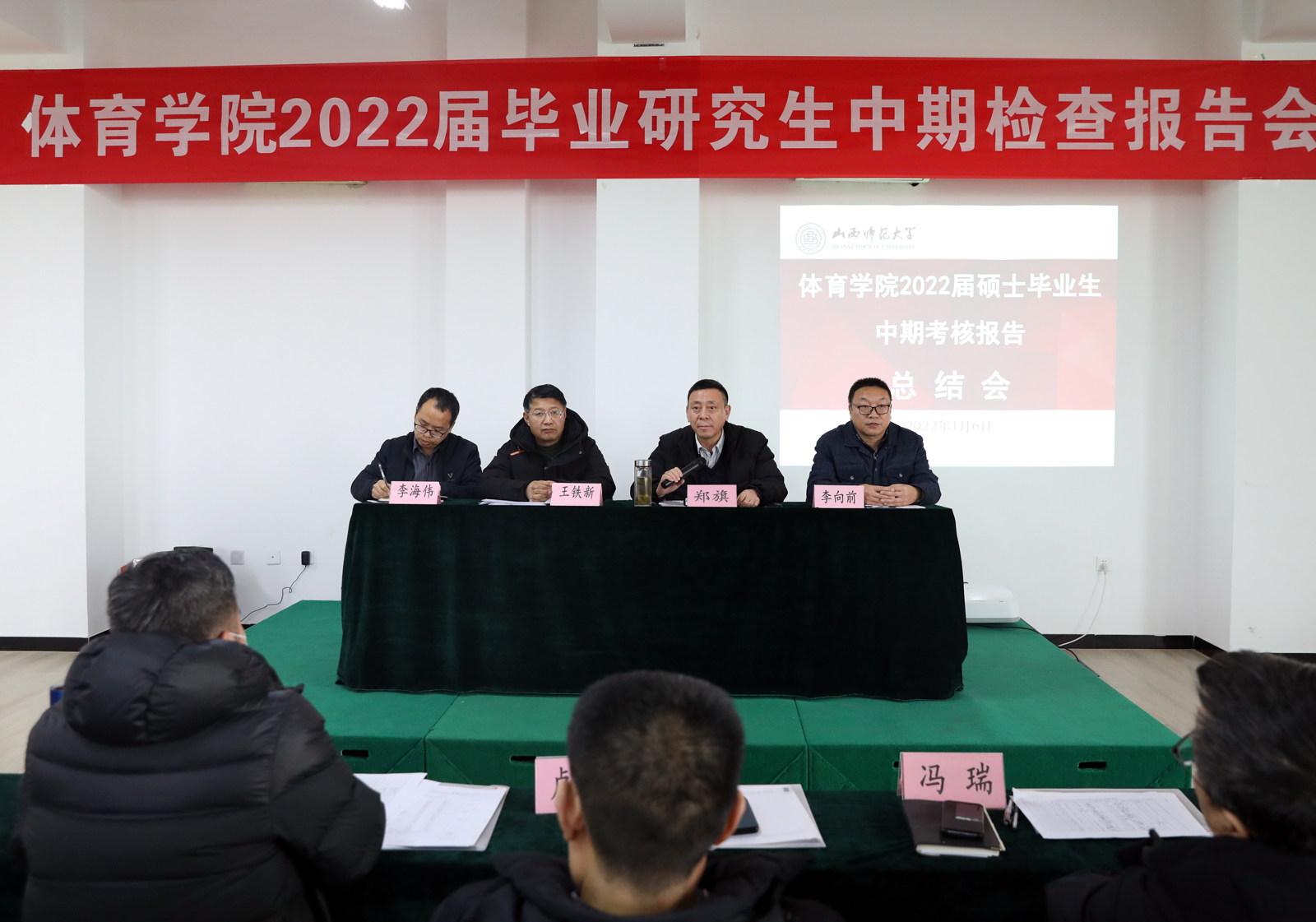 1月6日下午,我院进行2022届硕士毕业生中期考核汇报会。汇报工作分四组在实验中心和东会议室进行,因疫情不能返校的研究生采用线上形式进行。中期考核主要从研究生的思想政治表现、课程学分、教学实践、论文进展情况等9个方面来综合评定。导师组对参加考核的研究生进行了评议,组长对本组考核情况进行小结,诊断和分析各位研究生在读前期所取得的学业成绩及存在主要不足。
