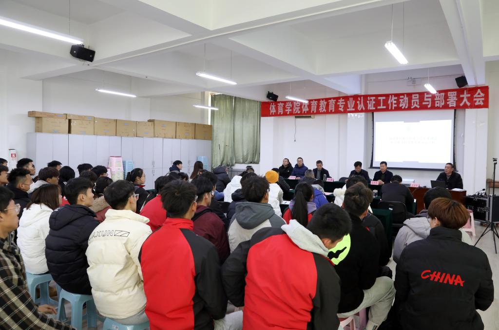 为进一步推进师范类专业认证工作,2022年12月2日下午我院进行了体育教育专业认证工作动员与部署大会,会议采用线上线下同步进行。院党委书记卫建平、院长郑旗、教育部普通高等学校师范类专业认证专家、生命学院胡青平教授、教育部普通高等学校师范类专业认证项目管理专家、美术学院党委副书记刘宏超、体育教育系主任张杰,全院教职工和体育教育系学生代表参加会议,会议由副院长孟春雷主持。