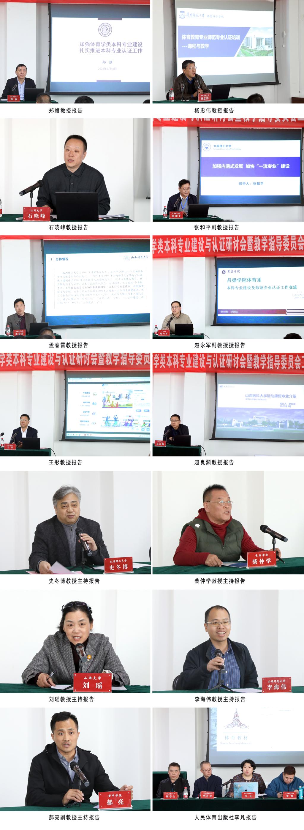 会上,郑旗院长作了题为“加强体育学类本科专业建设 扎实推进本科专业认证工作”的报告,介绍了山西省高校体育学类本科专业建设现状及问题、高校专业认证初识与概貌、体育学类本科专业与课程思政建设,以及高校教指委推动专业认证工作的要求与安排。杨忠伟教授以华南师范大学专业认证的经验,从课程与教学的角度作了题为“体育教育专业师范认证培训”的专题报告。