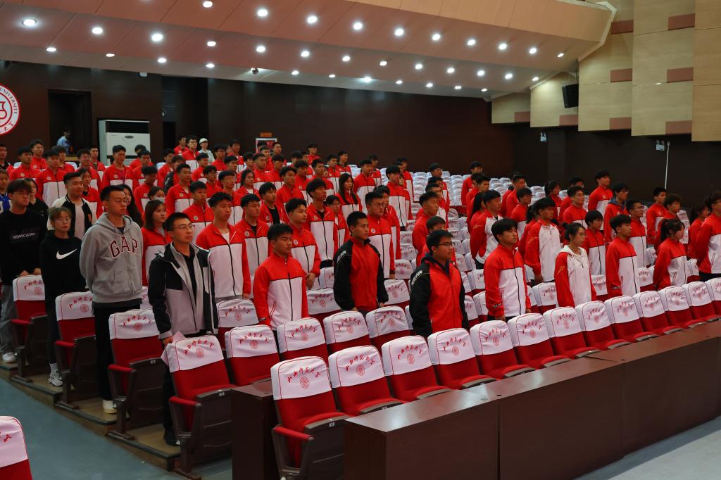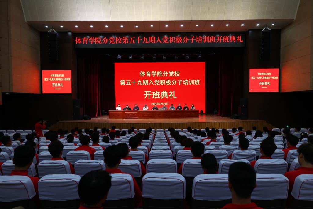4月20日-4月24日,7790cnm必发集团举办了第59期入党积极分子培训班。20日晚,培训班开班典礼在科学会堂一层报告厅举行。院党委书记、分党校校长卫建平,院党委副书记、院长郑旗,院党委副书记张大为,院党委委员、副院长王江,院党委委员、副院长李向前,院党委委员、体育教育系党支部书记张杰,社会体育系党支部书记李俊明,民族传统体育系党支部书记权黎明,运动训练系党支部书记卫玲玲,研究生第一党支部书记王丽娜及125名入党积极分子参加了开班典礼,院党委副书记张大为主持开班典礼。