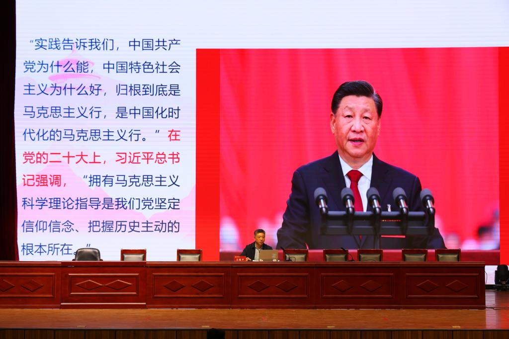 院党委书记卫建平在开班典礼后进行第一讲《坚马克思主义基本原理与中华优秀传统文化相结合》。他从党的二十大有关内容、马克思主义基本原理与中华优秀传统文化、学习贯彻落实好党的二十大精神三个方面进行了讲述,同时,对学习贯彻习近平新时代中国特色社会主义思想主题教育的总要求以及根本任务进行了解读。