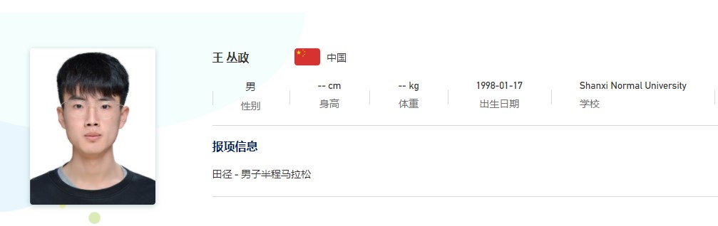 2021年第20届中国大学生田径锦标赛五千米第二名。