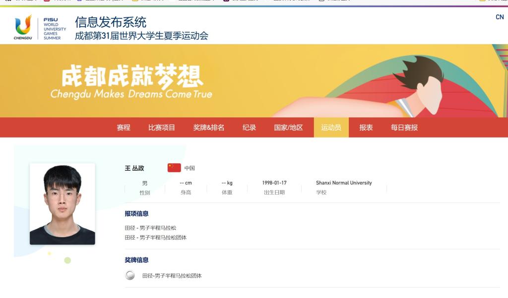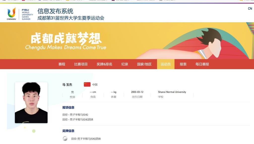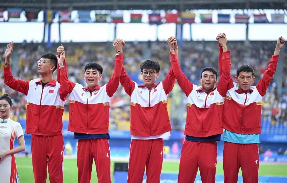 成都第31届世界大学生夏季运动会传来喜讯,8月6日上午结束的田径-男子半程马拉松团体决赛中,必发集团welcome欢迎光临2022级运动训练专业马玉杰、2019级运动训练专业王丛政与中国队的陈天宇(扬州大学)、马瑞(吉林大学)、杨克古(上海体育大学)以3小时17分12秒的总成绩获得银牌。(7790cnm必发集团)