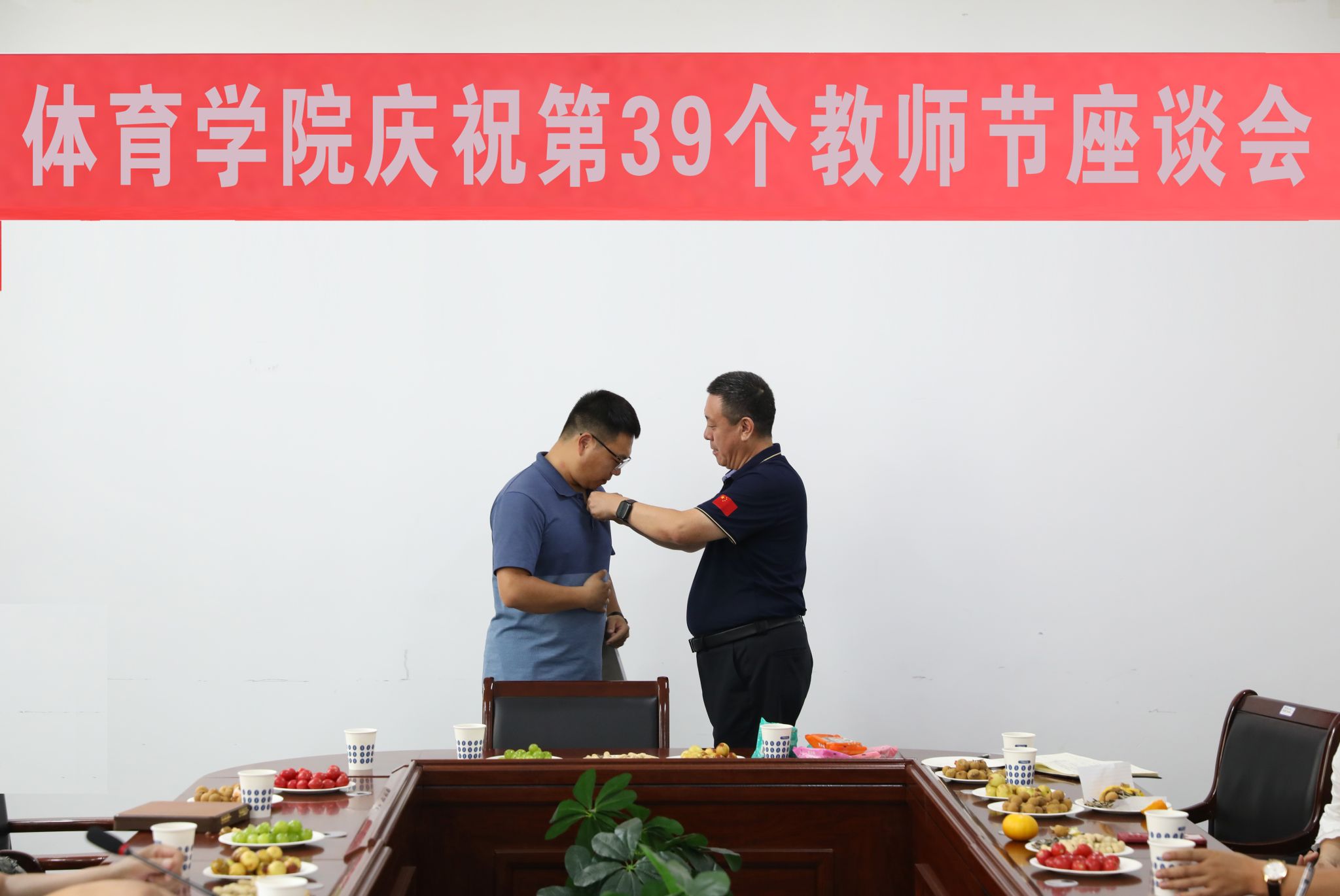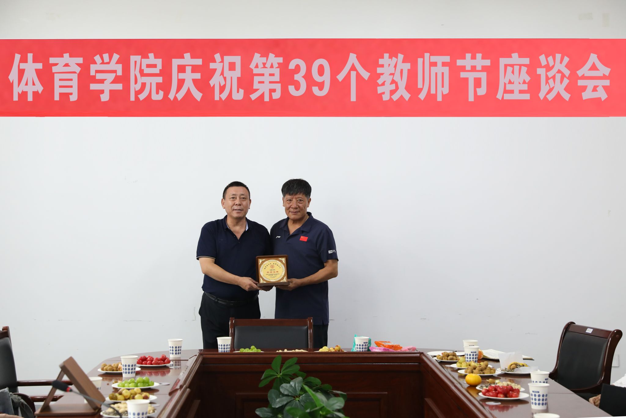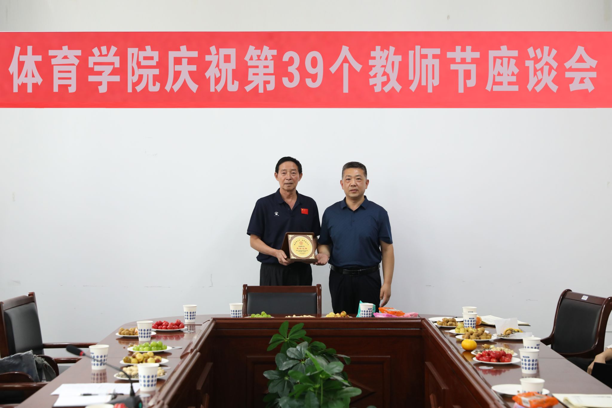 卫建平首先传达了学校庆祝第39个教师节暨表彰大会会议精神,并代表学院党委向辛勤耕耘在教学、训练、科研、管理等岗位上的教职员工致以节日的祝贺和崇高的敬意,向荣退的教职工致以衷心的感谢和美好的祝愿。他表示,老教师荣休,新教师入职仪式作为学院师德师风建设的一项重要内容,目的是赓续教育初心,担当育人使命,让师大体育精神代代相传。