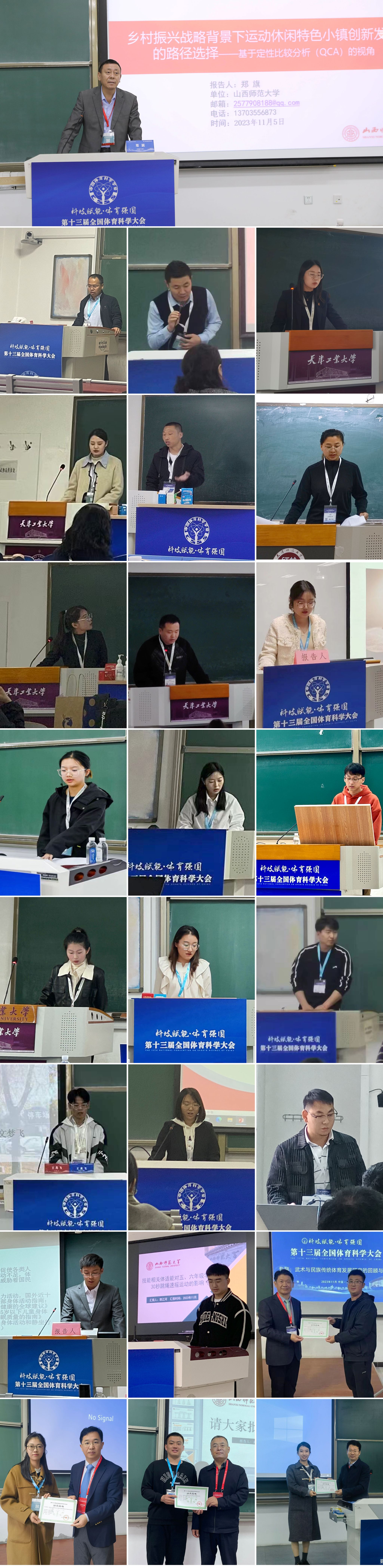 本次大会设置大会报告、专题报告、墙报交流、热点沙龙、国际学术交流研讨会等交流环节,我院师生参加了45场专题报告、墙报交流73篇、书面交流11篇,论文涉及体育社会科学、体育管理、体育产业、运动医学、体质与健康、学校体育、武术与民族传统体育等16个领域。其中,院长郑旗教授受邀作了题为《乡村振兴战略背景下运动休闲特色小镇创新发展的路径选择——基于定性比较分析(QCA)的视角》的专题主旨报告,并主持了“乡村振兴与体育产业发展研究(1)”专题报告会场的学术交流。
