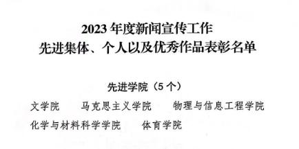 近日,学校下发《关于表彰2023年度新闻宣传工作先进集体、个人以及优秀作品的决定》通知,我院喜获2023年度“新闻宣传先进学院”荣誉称号,这也是学院继2022年以来,连续第二年获得该项荣誉称号。学生吴克凡荣获2023年度“新闻宣传优秀学生记者”荣誉称号。11月13日,学校召开2023年新闻宣传工作座谈会,会议回顾总结了学校2023年新闻宣传工作情况,表彰了2023年度新闻宣传工作先进学院、教职工年度人物和优秀原创作品,校党委副书记王志强出席会议,分别为获奖集体和个人代表颁发了奖牌并讲话。