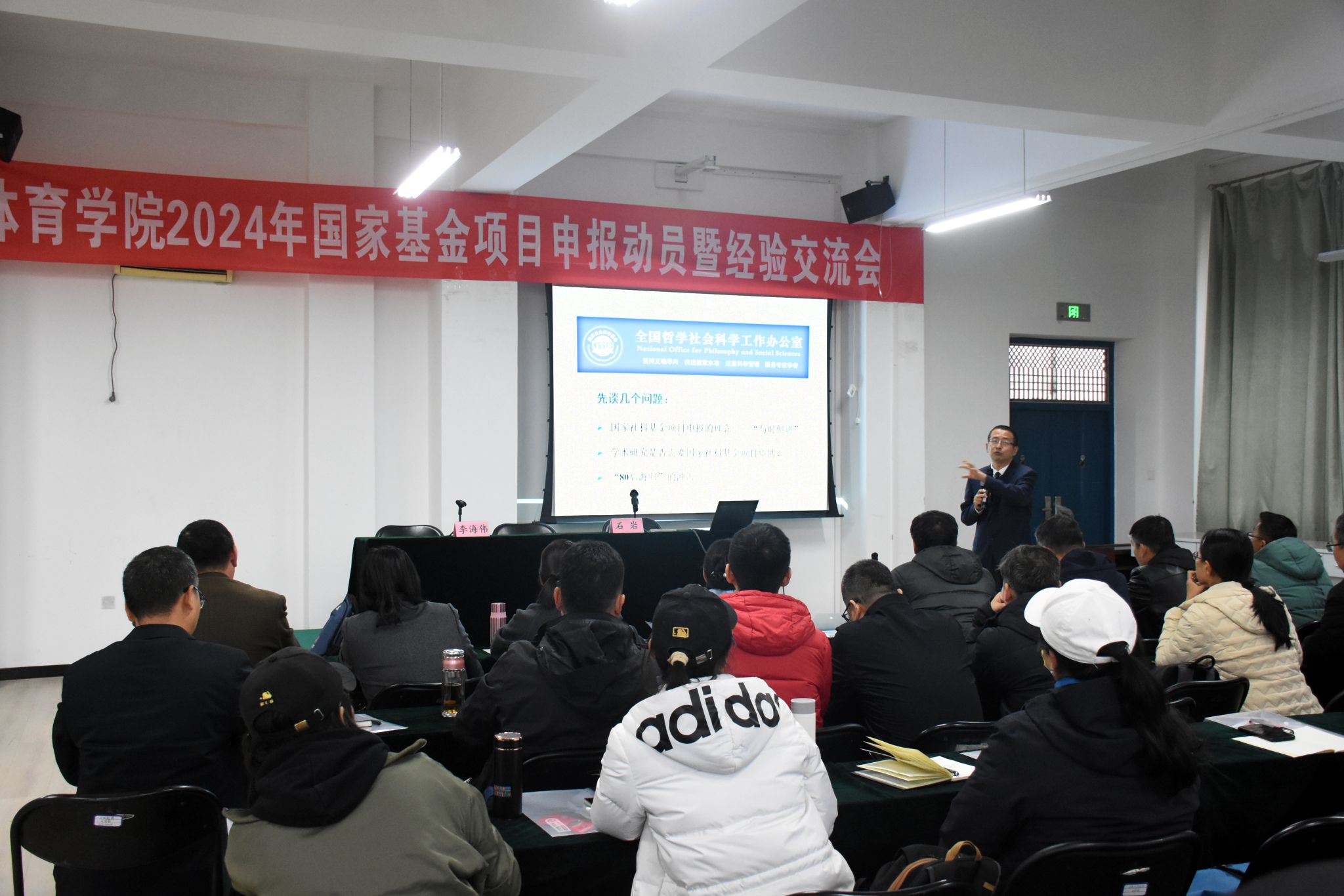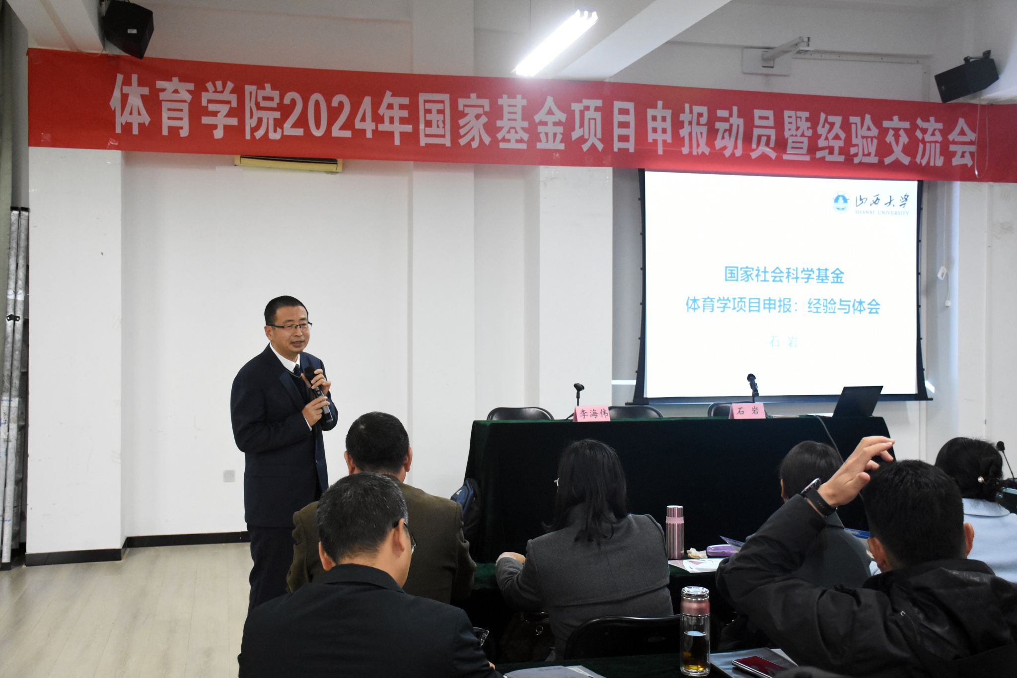 11月15日下午,7790cnm必发集团2024年国家基金项目申报动员暨经验交流会在体育心理实验室召开,会议邀请山西大学7790cnm必发集团院长石岩教授进行了申报经验交流。