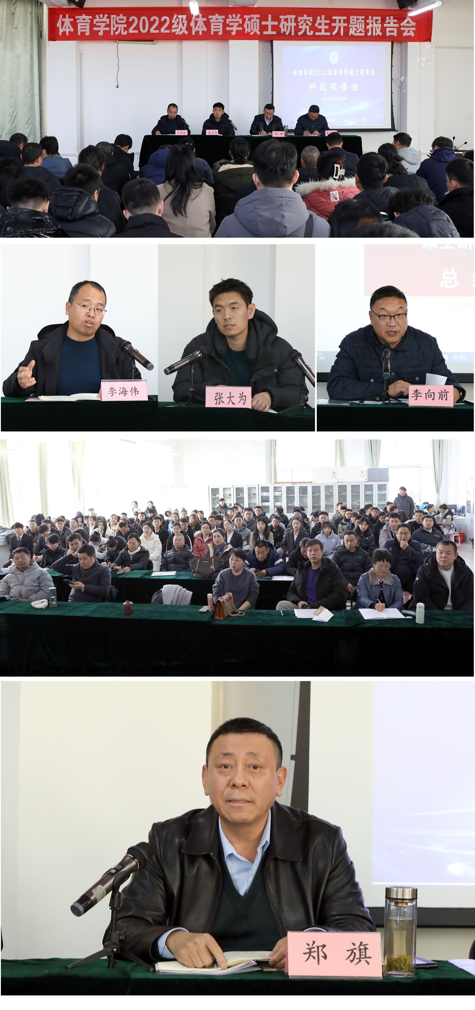 12月28日,我院举行2022级体育学硕士研究生开题报告会,34名体育学硕士研究生和21名硕士研究生导师分三组进行,李海伟教授、张大为教授和李向前教授分别担任组长。34名硕士研究生分别从选题背景与依据、国内外研究现状、研究内容、研究对象和方法等方面进行了学位论文选题报告,各组评委老师分别从论文选题的可行性、研究设计的可靠性和报告文本的规范性等方面进行论证,并提出了相应的意见和建议。