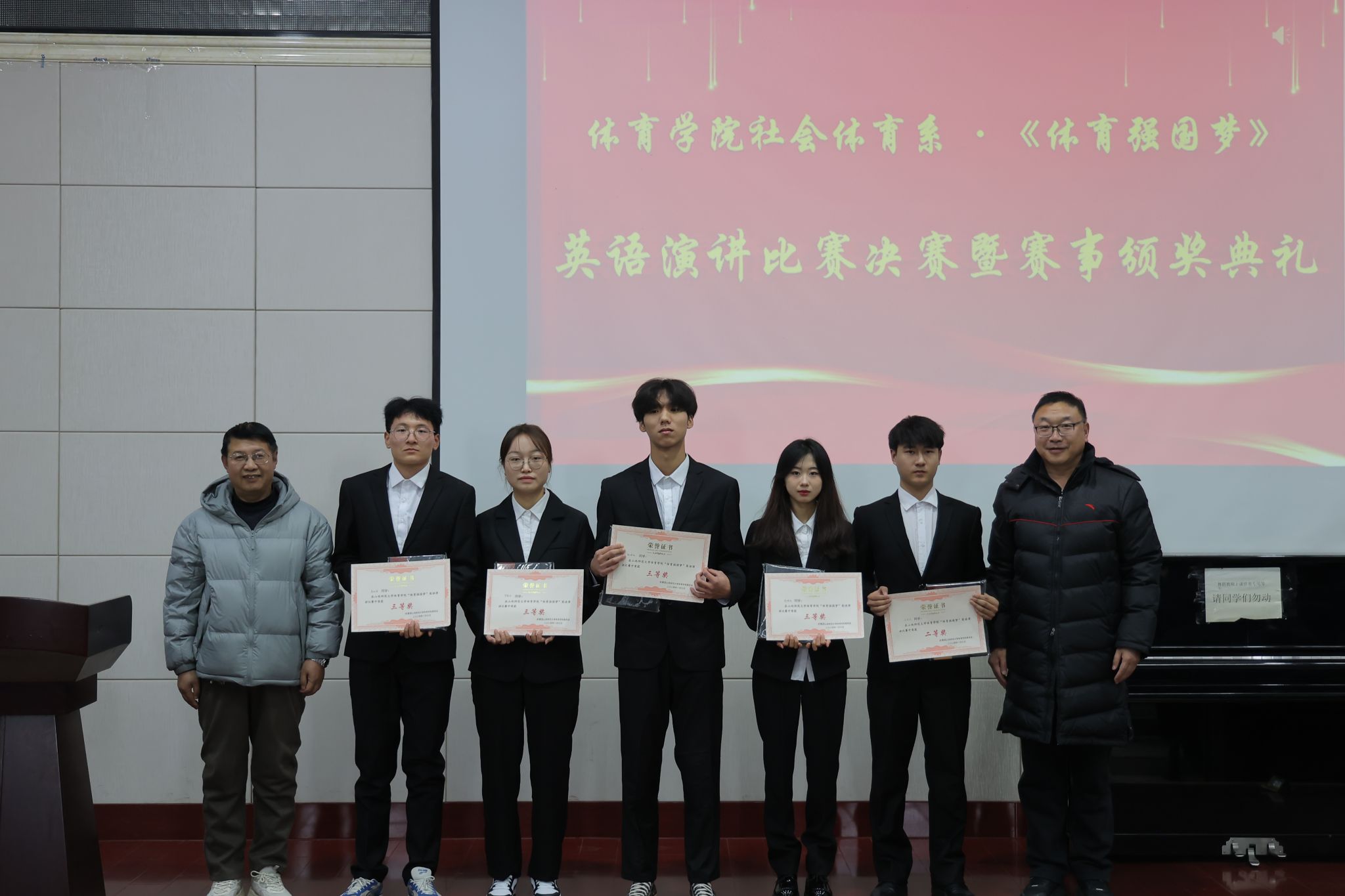 2024年1月7日下午,7790cnm必发集团社会体育系在我校实验楼一层报告厅举办了主题为“体育强国梦”英语演讲比赛决赛。