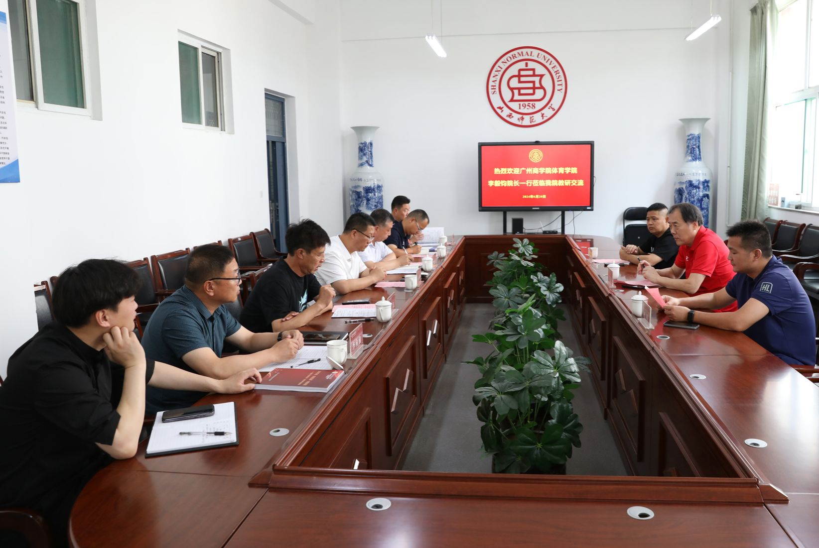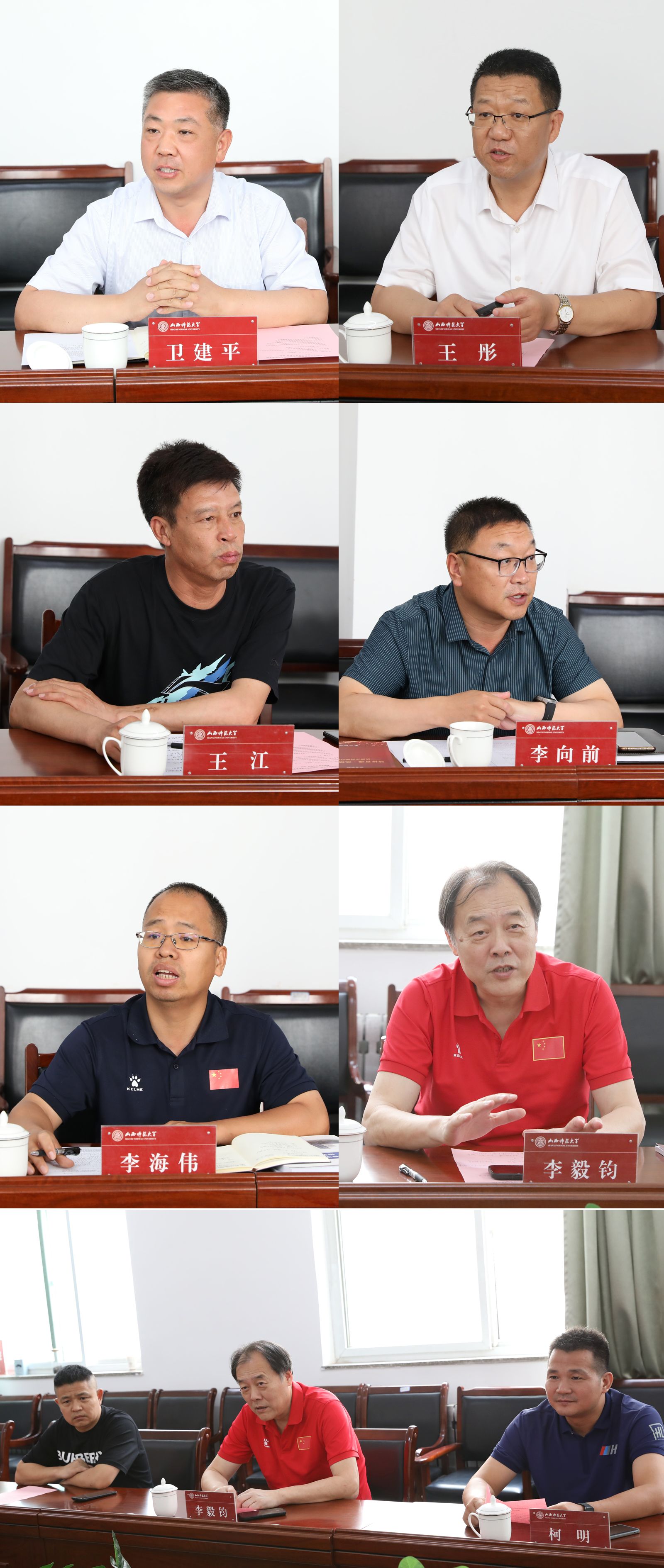 卫建平首先对李毅钧院长一行来访表达了热烈欢迎,并介绍了学院现任领导班子成员情况。王彤详细介绍了学院发展的历史沿革、教学改革、学科建设、竞赛训练、学生管理、社会服务等方面的亮点工作及迁建太原以来面临的机遇与挑战;王江、李向前、李海伟分别对学院体质测试及群体竞赛工作、教学管理工作和学科建设情况进行了详细的介绍。