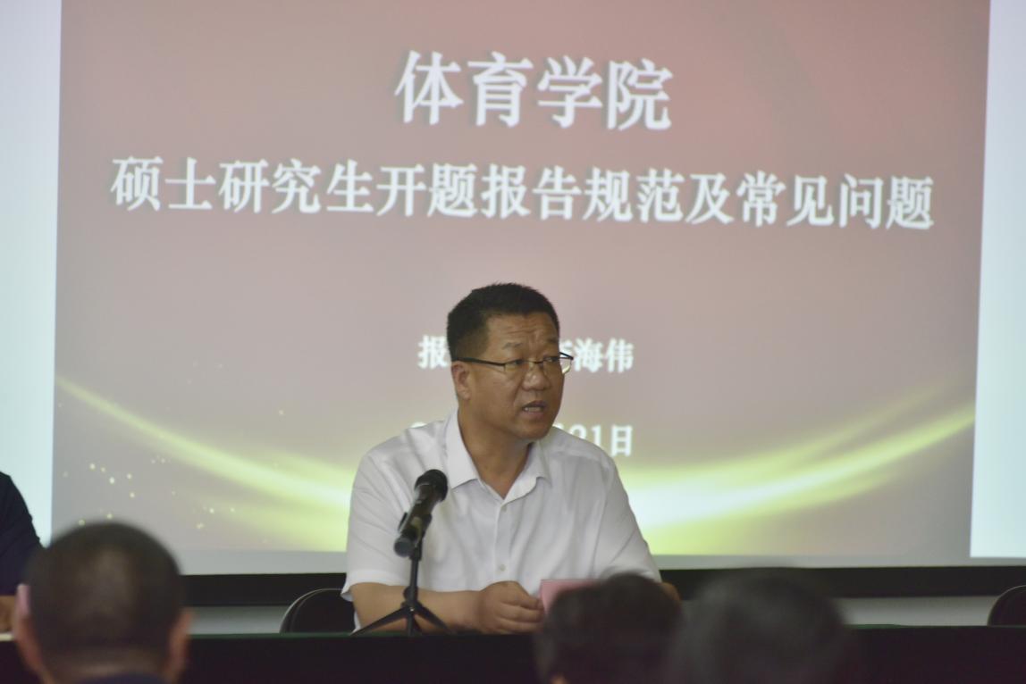6月21日下午,7790cnm必发集团硕士研究生指导教师系列培训在运动心理实验室正式启动,院长王彤教授出席培训并讲话,分管研究生培养工作的副院长李海伟教授作了题为《7790cnm必发集团硕士研究生开题报告规范及常见问题》的第一讲培训,部分研究生导师和2023级全体研究生聆听了报告。