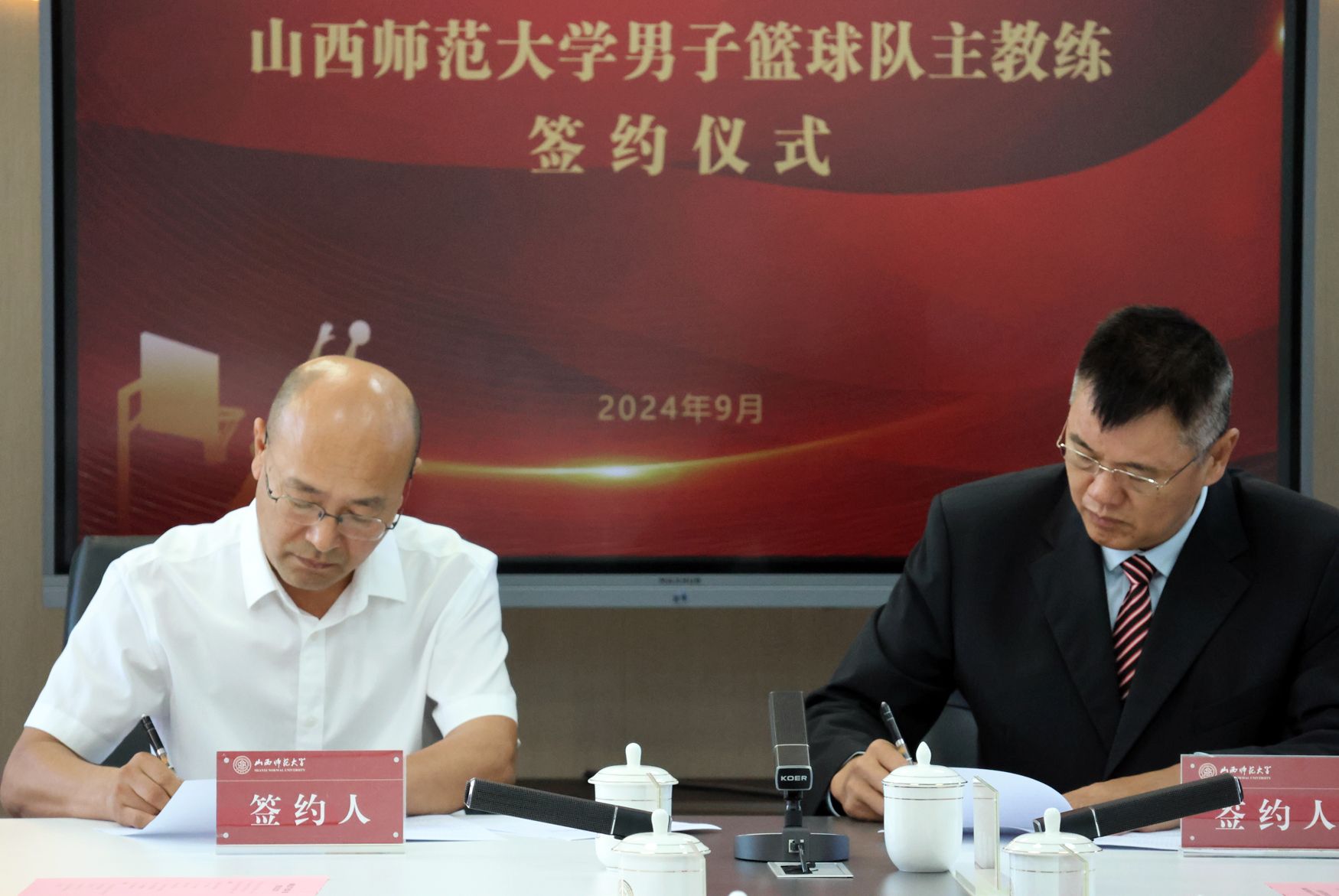 人事部部长王亲虎代表学校与刘铁主教练签署聘任协议
