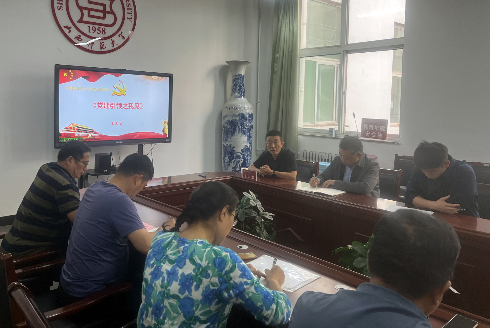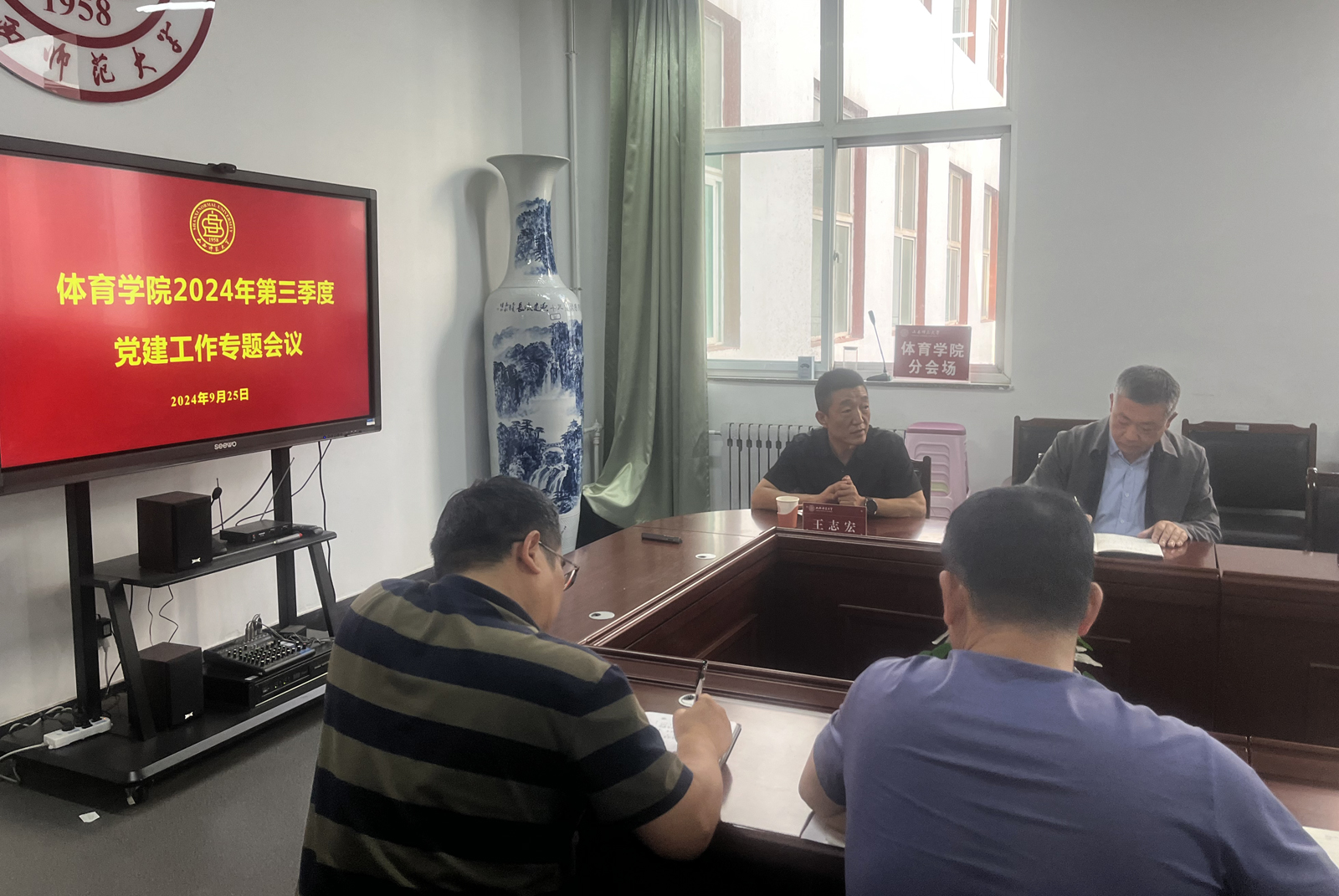 为加强基层党支部建设,提升学院党建工作质量和水平,9月25日下午,我院在7号教学楼学院会议室召开了2024年第三季度党建工作专题会,会议邀请校党委组织部副部长王志宏进行专题讲座,院党委副书记张大为、副院长李向前,各党支部书记及支部委员参加了会议。会议由院党委书记卫建平主持。