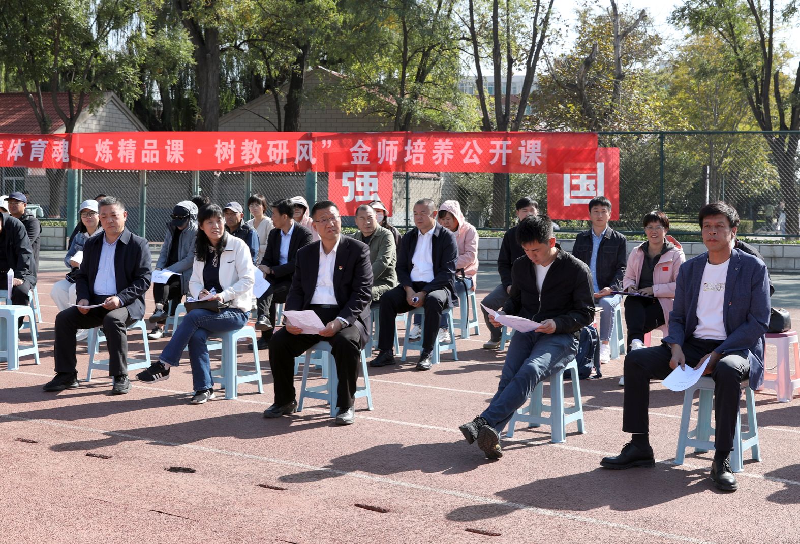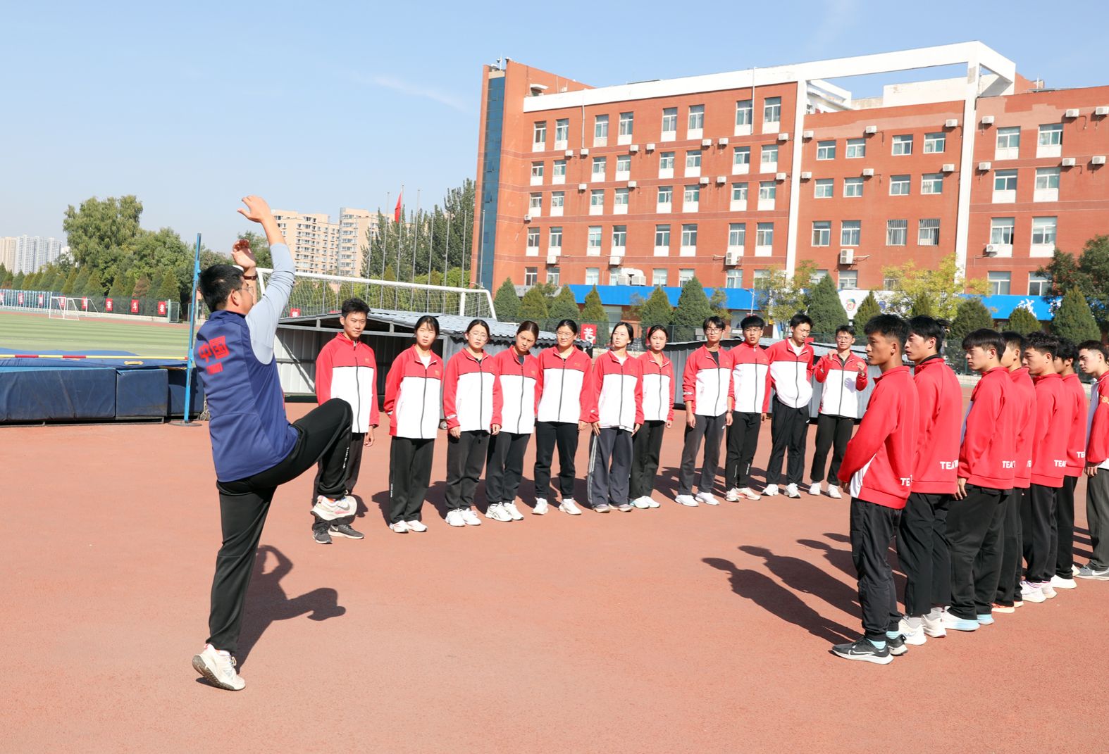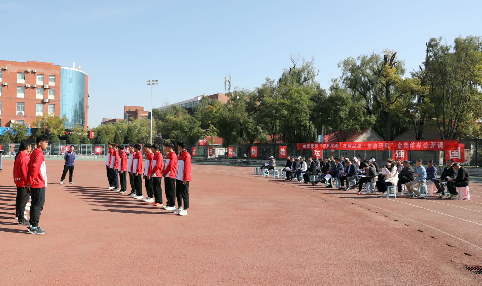 7790cnm必发集团“铸体育魂・炼精品课・树教研风” 系列第三阶段“凝新聚力共打磨・教学新秀促成长”于2024年10月11日14:00在田径场举行。此次公开课授课教师为体育教育系刘琦老师,授课内容为《背越式跳高起跳技术》,我校教学督导委员会委员张海珠教授、7790cnm必发集团领导、全体教师、部分学生齐聚田径场观摩了此次公开课,此次公开课由7790cnm必发集团副院长李向前主持。
