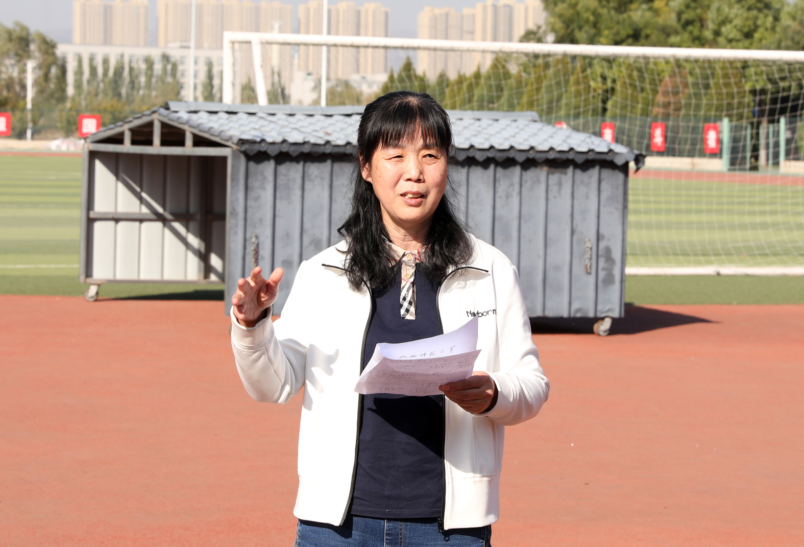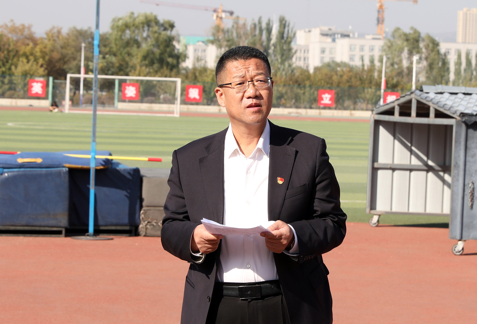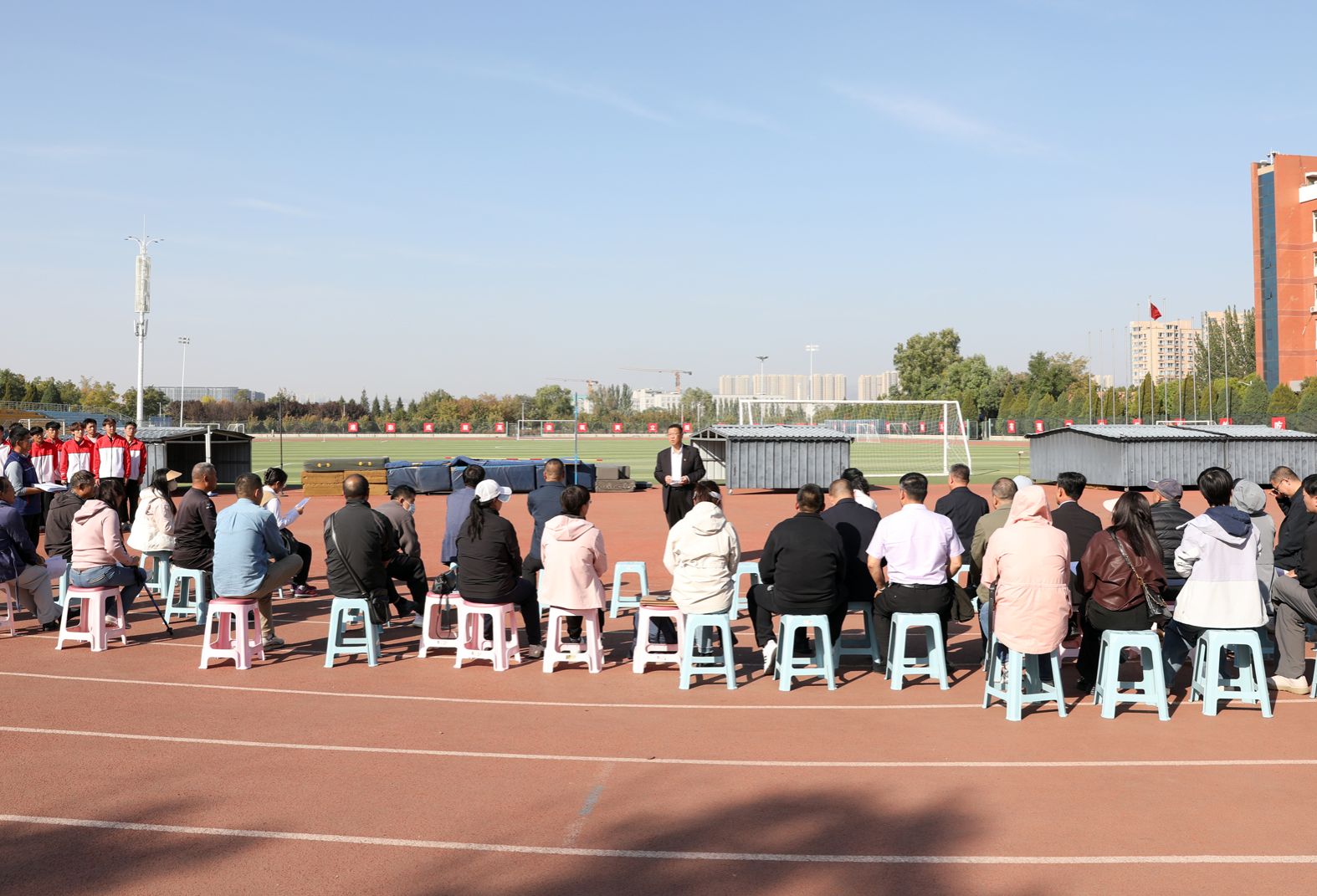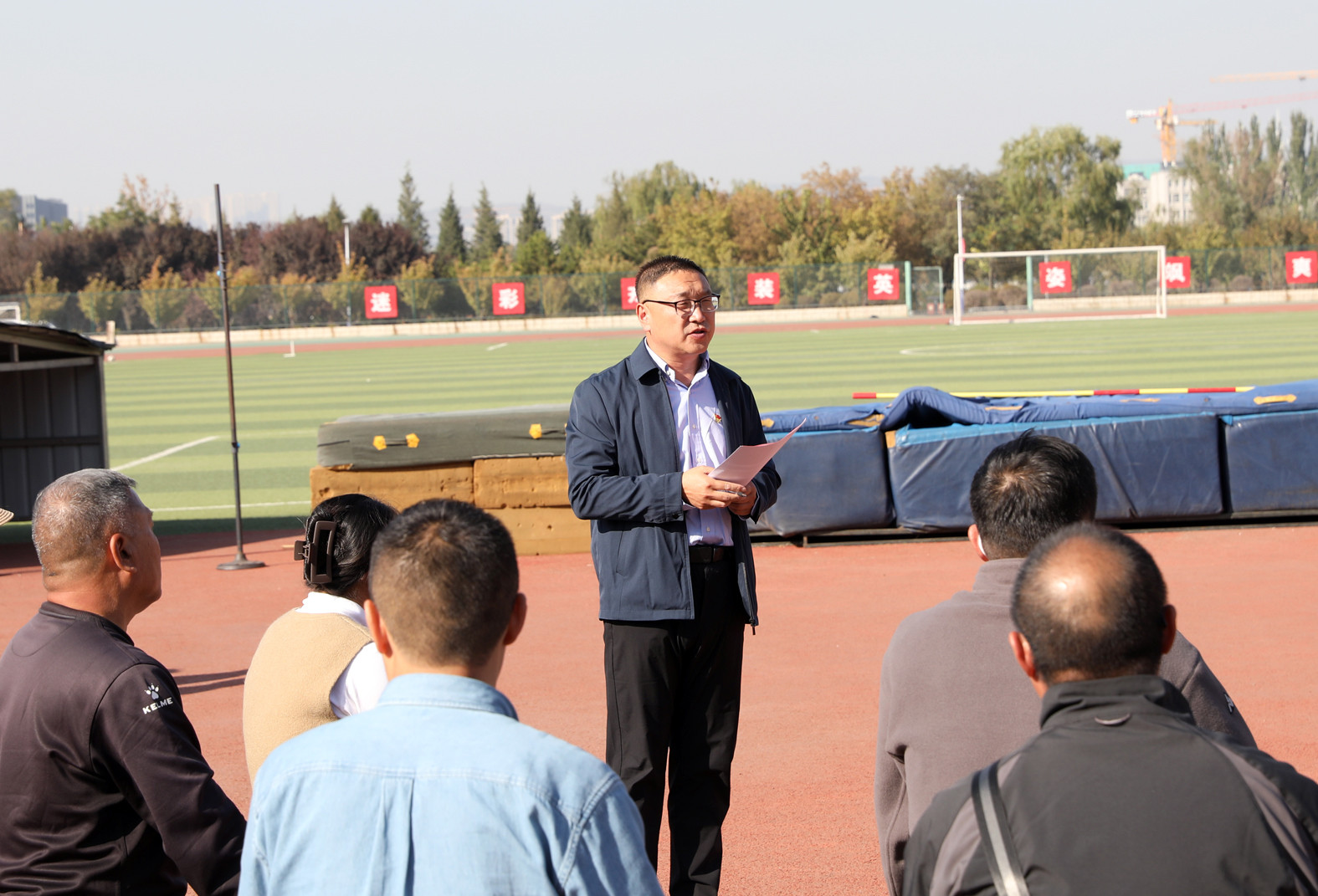 7790cnm必发集团“铸体育魂・炼精品课・树教研风” 系列第三阶段“凝新聚力共打磨・教学新秀促成长”于2024年10月11日14:00在田径场举行。此次公开课授课教师为体育教育系刘琦老师,授课内容为《背越式跳高起跳技术》,我校教学督导委员会委员张海珠教授、7790cnm必发集团领导、全体教师、部分学生齐聚田径场观摩了此次公开课,此次公开课由7790cnm必发集团副院长李向前主持。
