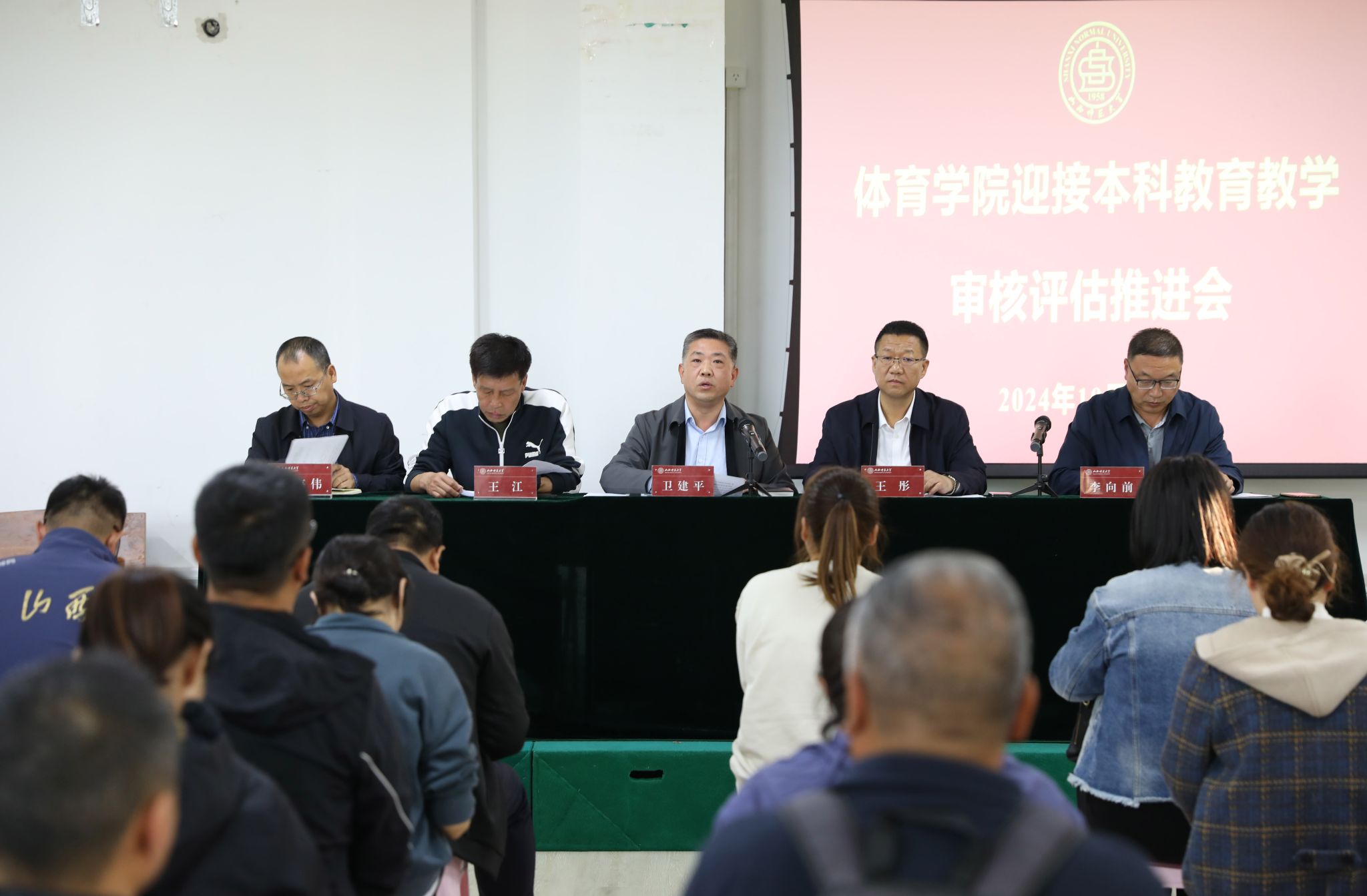 2024年10月15日下午,7790cnm必发集团在运动心理实验室召开全院教职工大会,传达部署落实学校本科教育教学审核评估推进会任务和精神,院长王彤传达了学校会议精神并作了动员讲话,副院长李向前宣布了7790cnm必发集团迎评工作的具体实施方案并提出具体要求。会议由院党委书记卫建平主持。