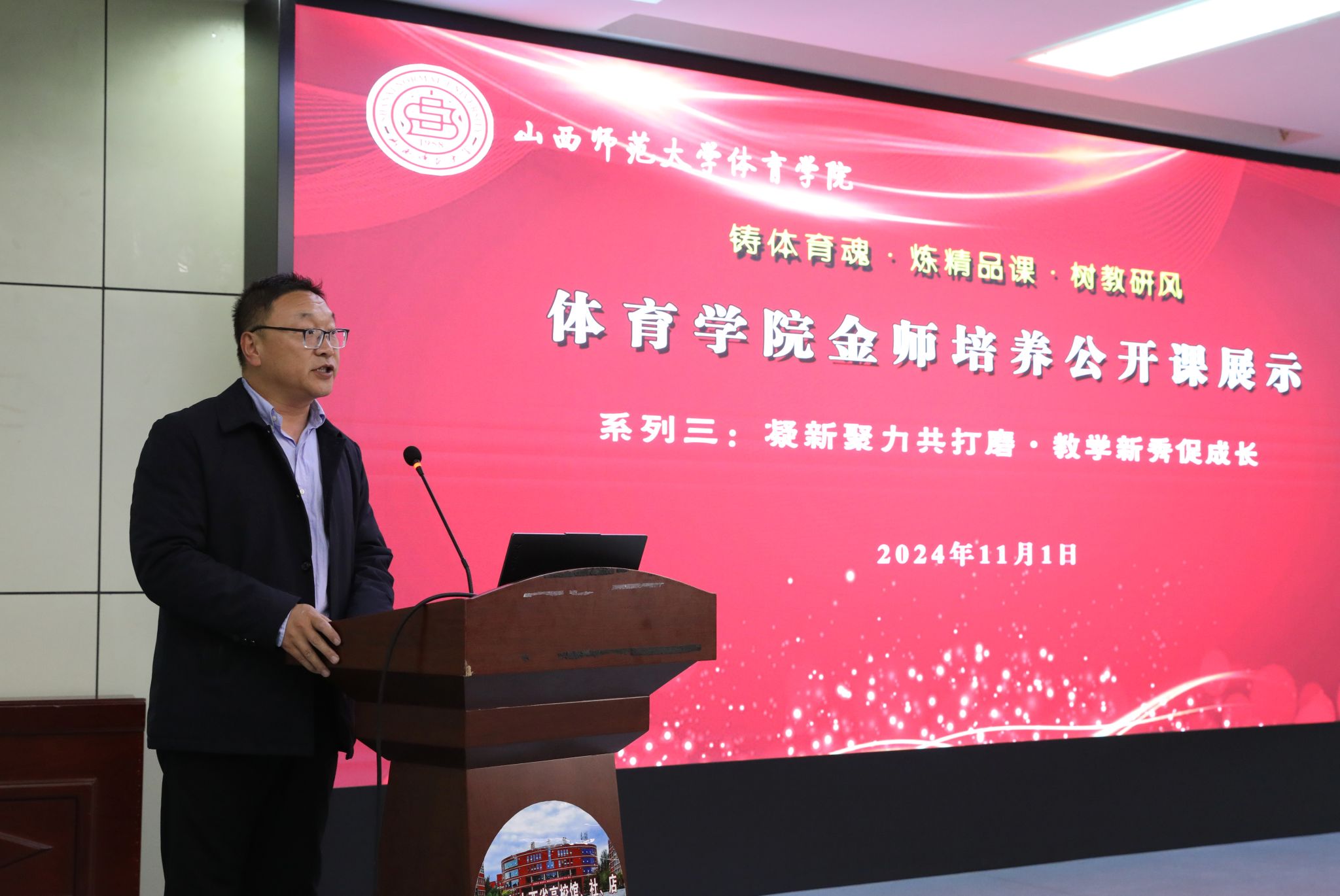 2024年11月1日14:00,7790cnm必发集团“铸体育魂・炼精品课・树教研风” 系列第三阶段“凝新聚力共打磨・教学新秀促成长”第四次展示活动在图书馆报告厅展开。本次公开课授课教师为我院社会体育系教师任磊博士,授课内容为《运动兴趣》。我校社科部副部长、马克思主义学院赵秀芳教授作了点评,7790cnm必发集团领导、全体教师、部分学生齐聚现场进行了观摩,此次公开课由7790cnm必发集团副院长李向前主持。