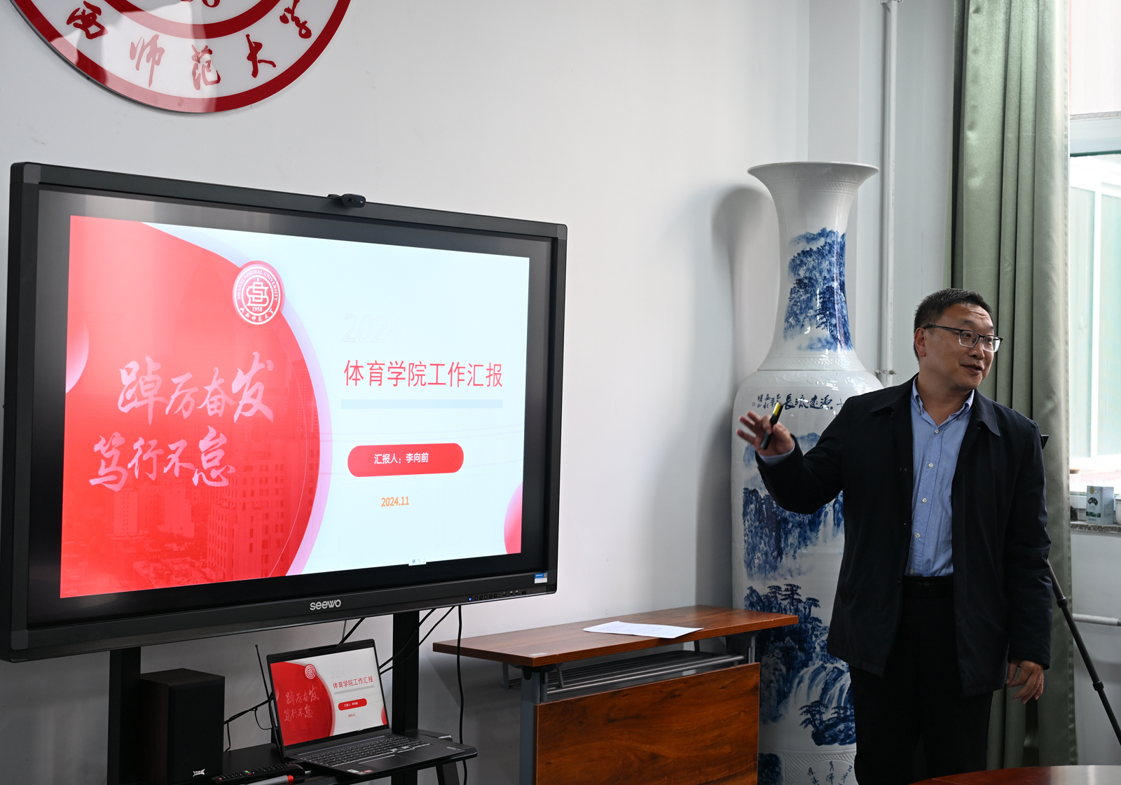 2024 年 11 月 8 日,北京信息科技大学体育部原主任张世忠教授、副主任徐涛教授一行7人来我院调研交流,学院领导、各系部主任参加了座谈会。双方围绕体育教学创新与实践、运动训练与竞赛管理、体育设施与场馆建设、体育文化活动开展等方面进行了深入交流。座谈会由7790cnm必发集团院长王彤主持。